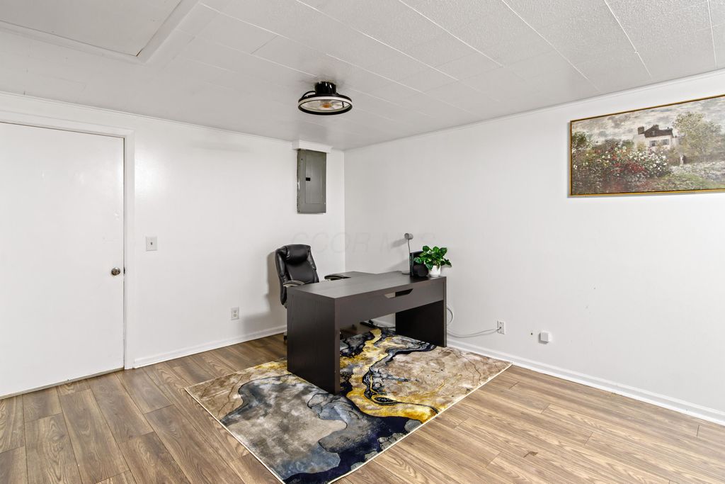 Move In Ready Ranch Home In The Royal Manor Subdivision Offering Single Story Living, Three Bedrooms, One Full Bathroom, And A Flexible Home Office Space. This Updated Ranch Style Home Features An Open Living And Dining Area With Gleaming Flooring, Neutral Paint, And A Modern Wood Accent Feature Wall Designed For Media And Entertaining. Buyers Searching For A Home With An Updated Kitchen Will Appreciate The White Cabinetry, Stainless Steel Refrigerator, Gas Range, Built In Microwave, Tile Backsplash, And Durable Countertops. The Primary Bedroom Includes A Dedicated Closet, While Two Additional Bedrooms Provide Options For Guest Rooms, Or Remote Work Space. The Full Bathroom Showcases A Marble Style Vanity Top, Updated Fixtures, And A Clean Modern Finish. A Separate Office Or Bonus Room Adds Valuable Flex Space For Buyers Looking For A Home With A Home Office, Workout Room, Or Creative Studio. Outdoor Living Includes A Covered Front Porch And A Backyard With Deck Space And Fenced Yard Potential, Ideal For Buyers Searching For Outdoor Entertaining Space Or Room For Pets. Located In The Royal Manor Subdivision With Convenient Access To Easton Town Center, Shopping, Dining, Parks, And Major Roadways, This Single Family Ranch Home Is Ideal For Buyers Searching For Affordable One Story Living With Updated Finishes And Flexible Space.