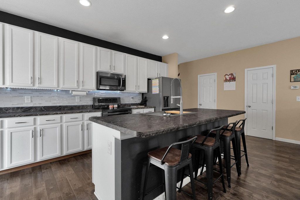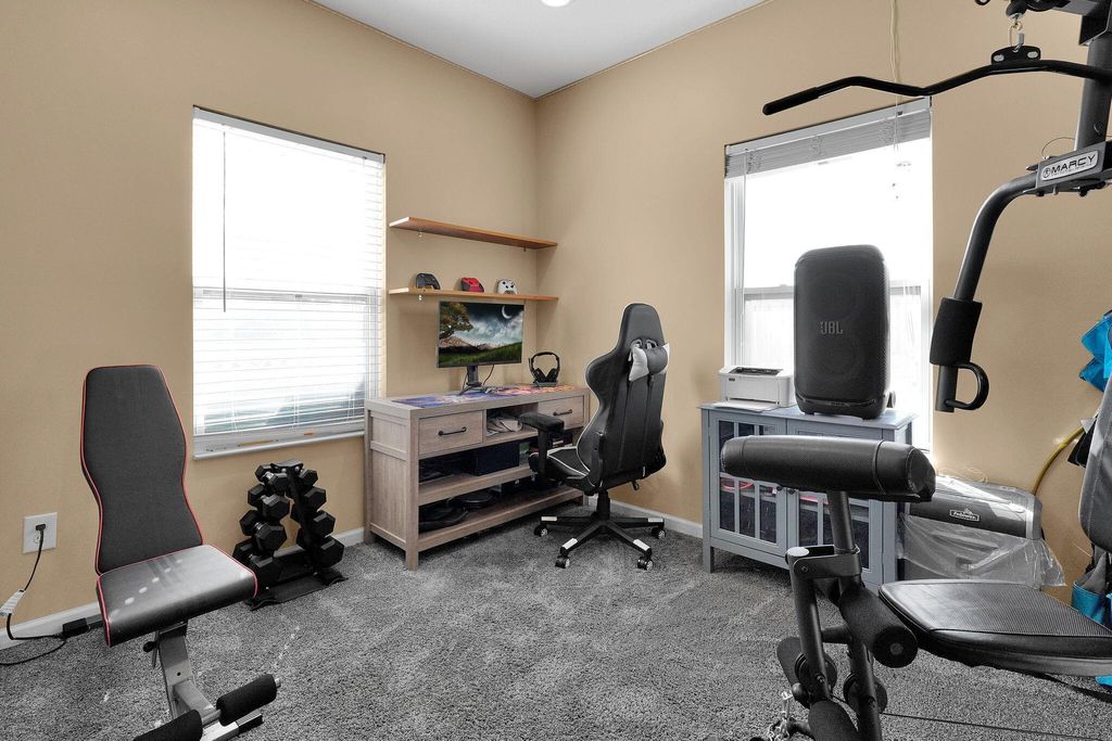 This spacious two-story home offers modern finishes, flexible living areas, and a comfortable layout ideal for today's lifestyle. The first floor features durable LVP flooring and an open kitchen with a large island, stainless steel appliances, and abundant cabinet space. The adjoining great room provides a warm, inviting area for everyday living and entertaining. A versatile first-floor office/game room is off of the great room. Upstairs, you'll find four generously sized bedrooms with large closets. Brand-new carpet throughout the 2nd floor. The primary bathroom features dual sinks. Large fenced in backyard with patio.