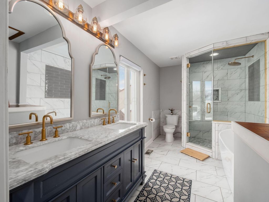 Your Dream Home in Dublin Is Here! Tucked away on a quiet cul-de-sac! Walking distance to Old Dublin and Bridge Park and just 8 minutes to the Dublin Rec Center! This beautifully updated home delivers the perfect blend of privacy, style, and convenience. Step into the stunning 3-season room overlooking a massive, tree-lined yard--your own private oasis complete with a large patio and lush, mature landscaping. Inside, every space shines! The fully remodeled chef's kitchen steals the show with brand-new cabinetry, gleaming granite countertops, stainless steel appliances, and an oversized island with built-in dining. Fresh flooring, updated lighting, and modern fixtures elevate the entire main level, while elegant crown molding adds a touch of sophistication. Upstairs, you'll find four spacious bedrooms, including a luxurious owner's suite featuring a huge walk-in closet and a brand-new spa-inspired bath with a walk-in shower, soaking tub, and double vanities. Enjoy the extra living space in the finished lower level - perfect for entertaining, game room, etc. This home checks every box! New windows, roof, updated mechanicals, newer driveway & front steps, and many other gorgeous updates throughout! Move-in ready and absolutely stunning. OPEN SUNDAY MARCH 8th 12:00-2:00pm