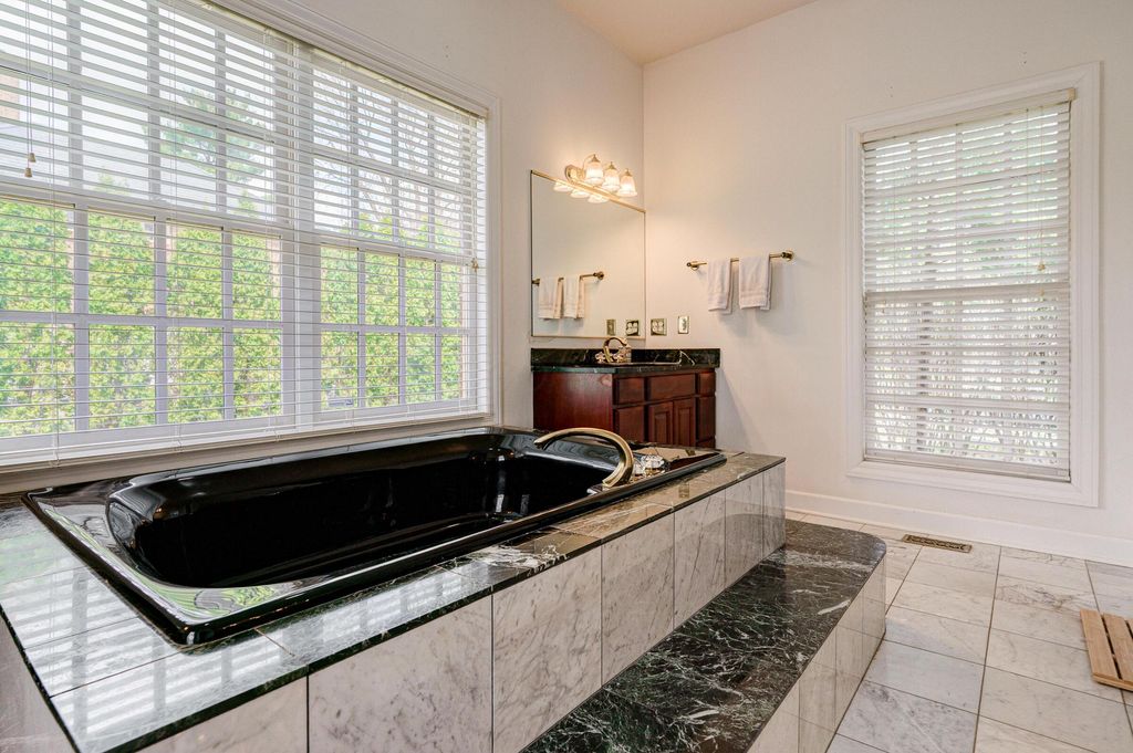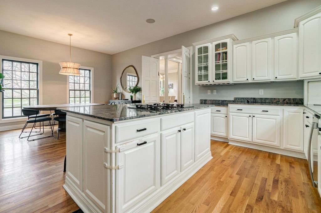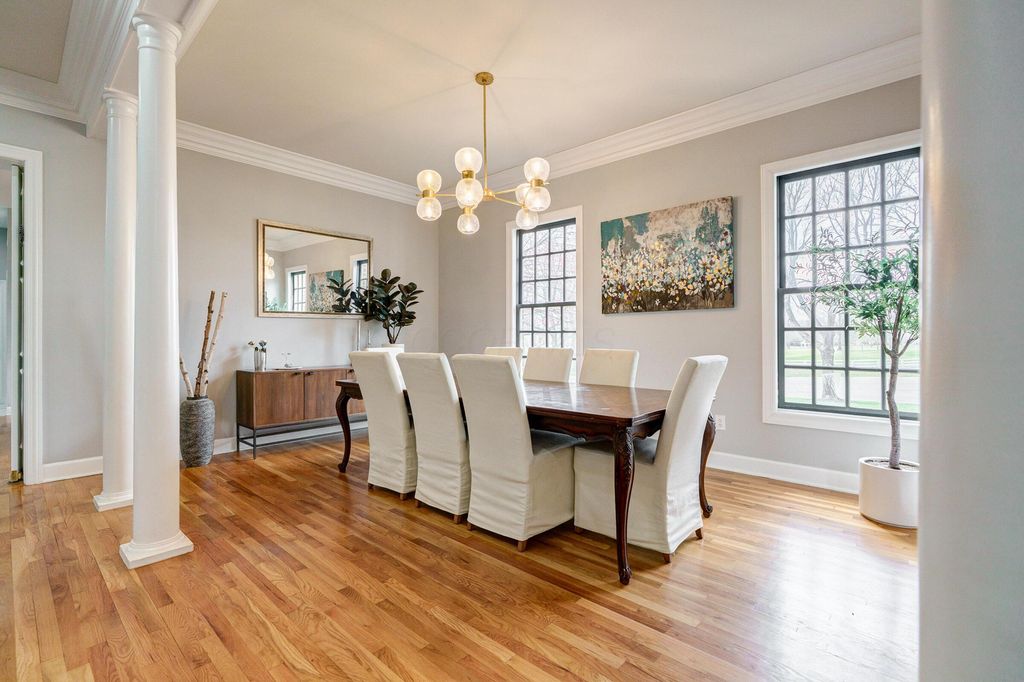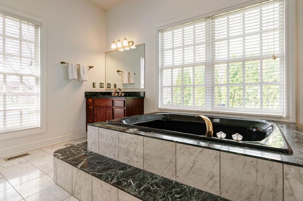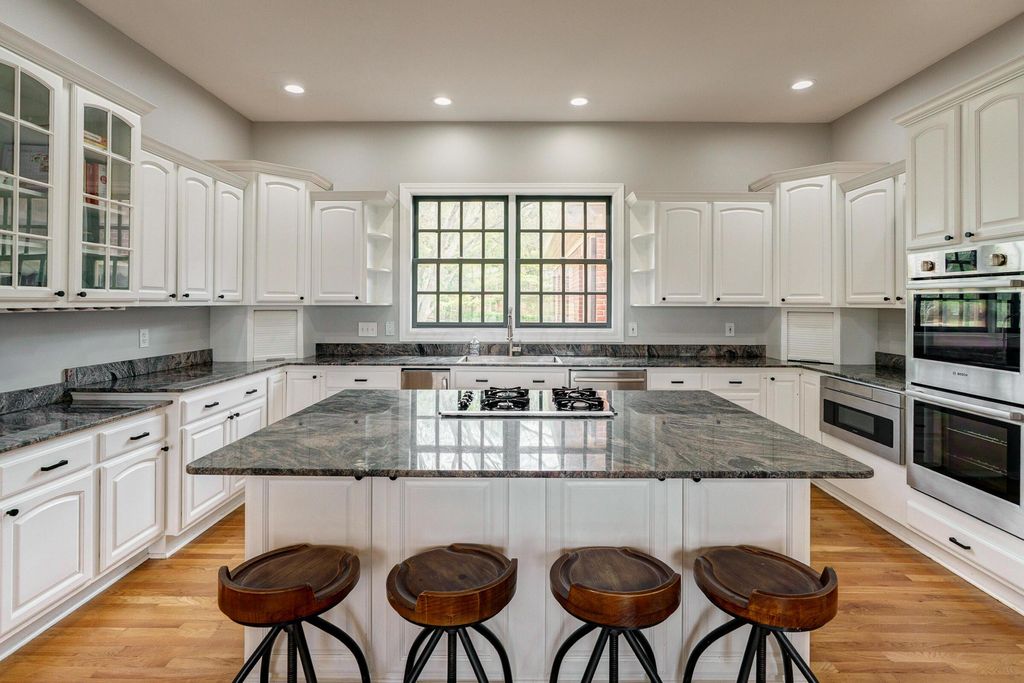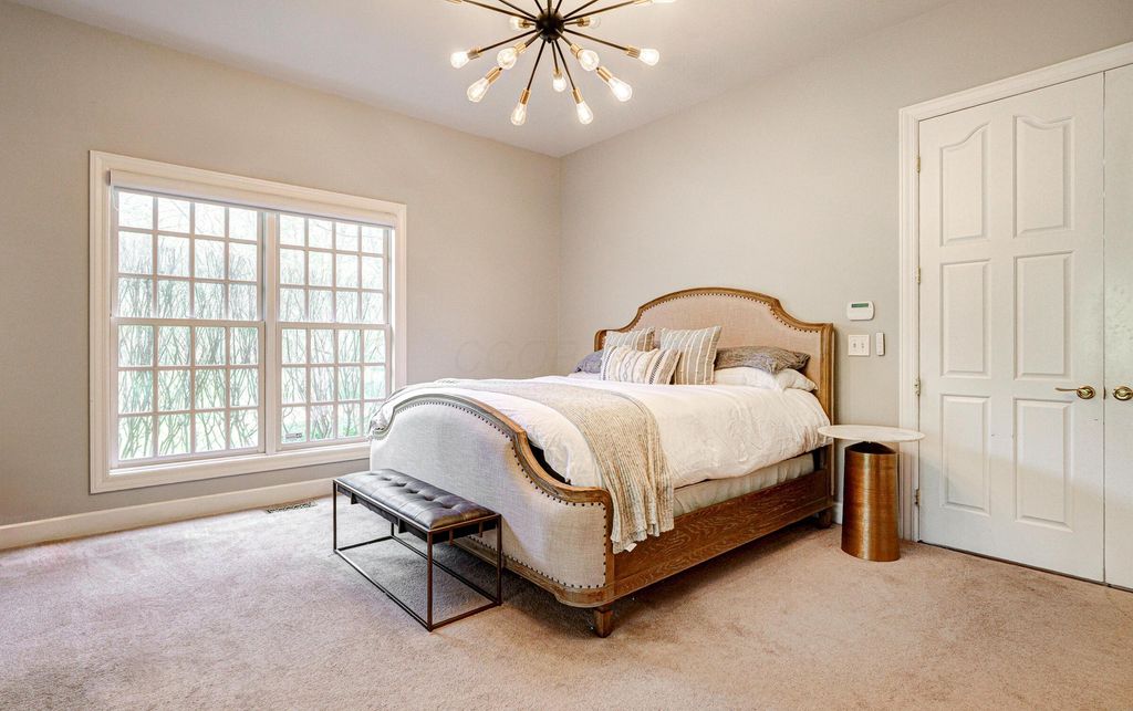 A timeless brick estate located in the New Albany Country Club community. Located on over an acre across from the 9th hole of the East Course and walking paths, this home offers an exceptional setting and expansive living throughout. A grand entry with dual staircases sets the tone for the impressive layout, featuring a two-story great room, formal living and dining room, a den, and an open kitchen with granite countertops, breakfast bar, and casual dining area. The first-floor primary suite provides generous space and the opportunity to customize it to your vision. Upstairs includes four spacious bedrooms and two full baths, while the finished lower level offers a rec room, wet bar, an additional bedroom, and a full bath. Large backyard with a brick patio and additional space perfect for a fire pit. Complete with a three-car garage, this home offers the opportunity to create a space that reflects your style in one of New Albany's most desirable communities.