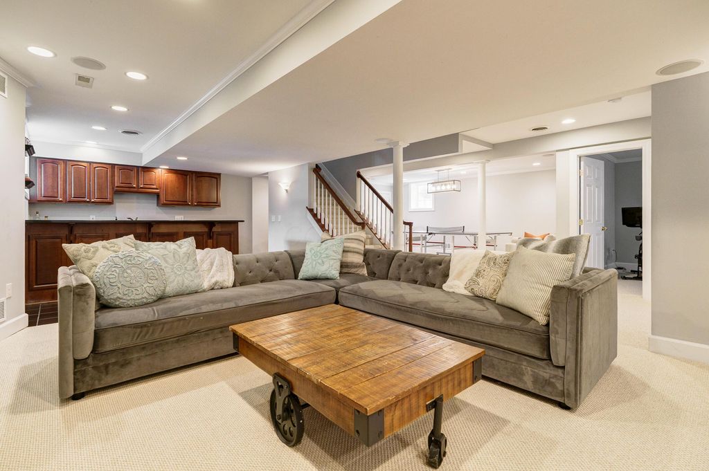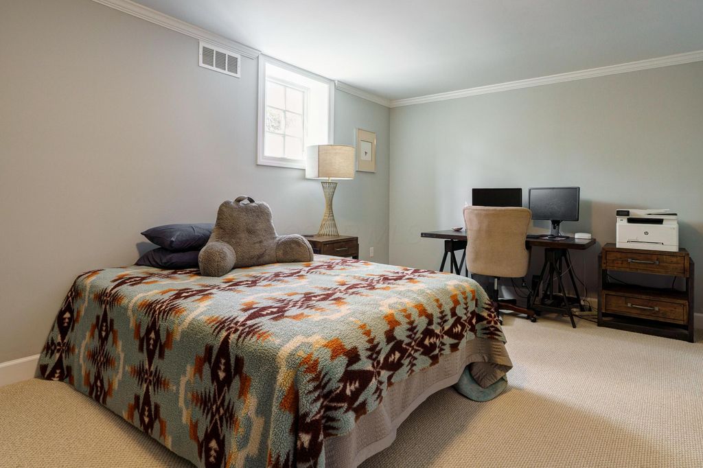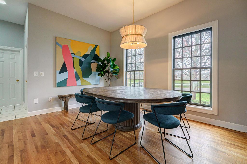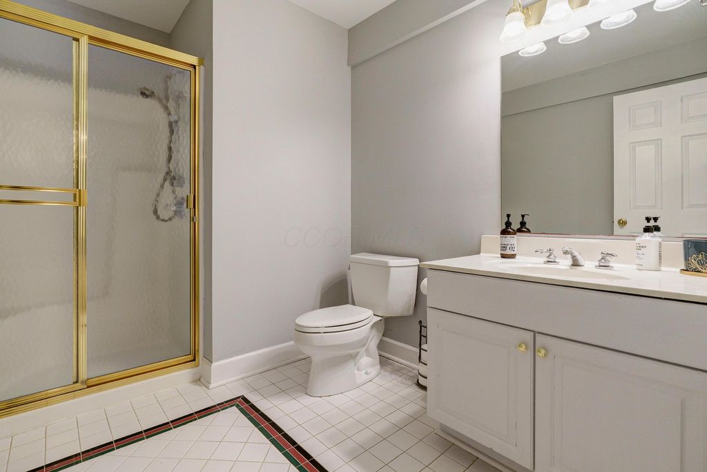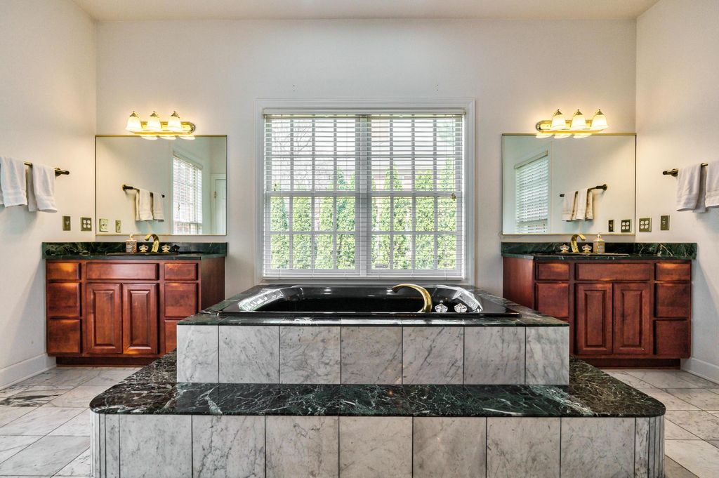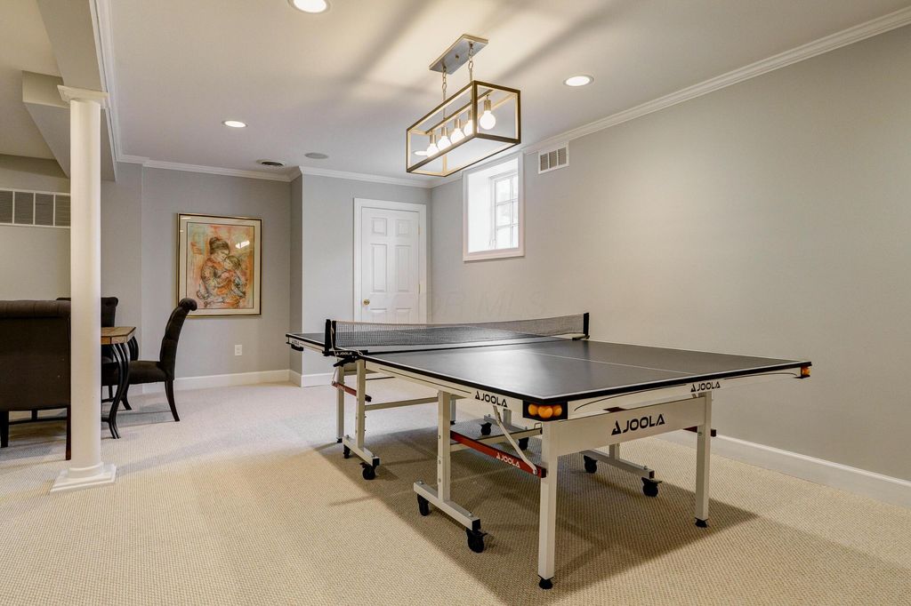 A timeless brick estate located in the New Albany Country Club community. Located on over an acre across from the 9th hole of the East Course and walking paths, this home offers an exceptional setting and expansive living throughout. A grand entry with dual staircases sets the tone for the impressive layout, featuring a two-story great room, formal living and dining room, a den, and an open kitchen with granite countertops, breakfast bar, and casual dining area. The first-floor primary suite provides generous space and the opportunity to customize it to your vision. Upstairs includes four spacious bedrooms and two full baths, while the finished lower level offers a rec room, wet bar, an additional bedroom, and a full bath. Large backyard with a brick patio and additional space perfect for a fire pit. Complete with a three-car garage, this home offers the opportunity to create a space that reflects your style in one of New Albany's most desirable communities.