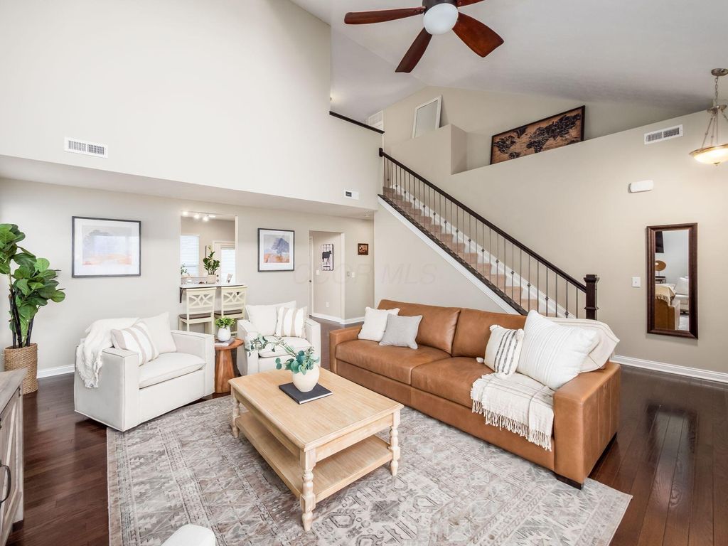 This Lovely Upper Albany West home offers three-bedrooms, 2.5-baths and a Large Bonus Room! Summer is coming and this Columbus SD home includes a Clubhouse, Gym and Pool! With a convenient first-floor primary suite and a large, open great room with gorgeous hardwood floors this is easy living! The open kitchen is equipped with stainless steel appliances, espresso cabinets, tile backsplash and brushed nickel hardware. Additional first-floor features include a laundry room/Mud Room with a washer and dryer included. The exterior offers a private rear patio and a two-car attached garage. Upstairs, you will find an open loft area, two large bedrooms, a full bath, and a massive bonus room above the garage with vaulted ceilings. The home also includes custom closets, custom mini blinds, overhead lighting, and many recent updates throughout.