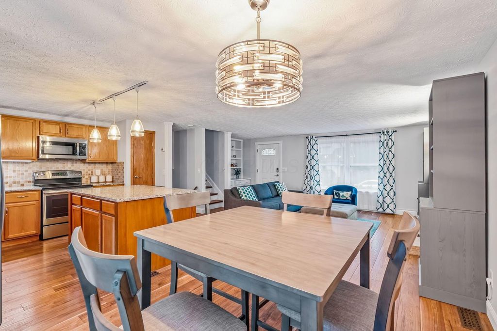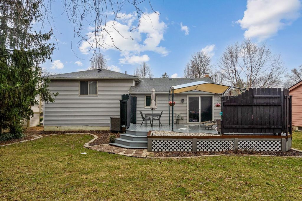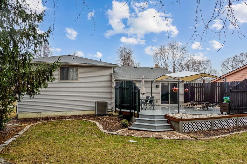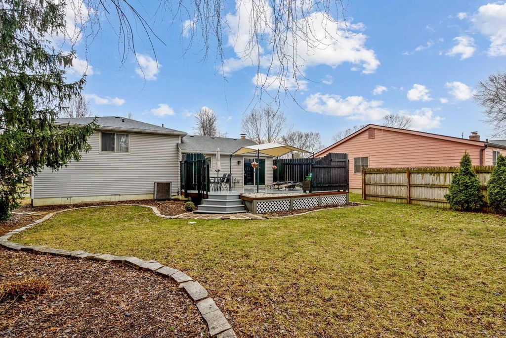 This beautifully maintained home offers comfort and style throughout in Dublin Schools with Columbus Taxes! The kitchen includes a center island with pendant lighting, granite countertops, wood cabinetry, tile backsplash, and stainless-steel appliances that flow seamlessly into the dining area. Step outside to a large deck overlooking the fenced yard with a storage shed and beautiful perennial gardens. Upstairs, you'll find a spacious primary suite with a connected full bath and two additional bedrooms. The first level down leads to an entry with coat closet and opens to a large 2 car attached garage that provides abundant storage. The 2nd level down has additional living space with a comfortable family room, exercise nook, and half bath as well as the utility space. Convenient to shopping, dining, restaurants and more!