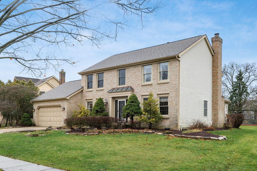 SHOWINGS BEGIN SATURDAY AT OPEN HOUSE 1-3P Welcome to this elegant brick-front Colonial nestled in the highly sought-after Brandon subdivision. Gorgeous kitchen with stainless steel appliances, gas range and oversized enviable island. This kitchen is the heart of the home! Kitchen flows beautifully into a spacious dining area and sun-filled Great Room with bump-out and gas log fireplace--creating the perfect setting for both entertaining and everyday comfort. Rich hardwood floors grace the main level, with the convenience of a first-floor laundry. Newer roof and HVAC. Front music room offers flexible space as an office, parlor, or library. Step outside to a large deck overlooking a serene, private, tree-lined backyard--an exceptional setting for outdoor dining and peaceful evenings. The partially finished lower level offers a flexible retreat for recreation or leisure and includes a convenient half bath. Upstairs, Pella wood windows, ceiling fans in each bedroom, and a programmable Ecobee smart thermostat provide year-round comfort. Walking distance to Bailey Elementary school! This home blends timeless design, modern updates, and an exceptional lifestyle in one of the area's most desirable neighborhoods.