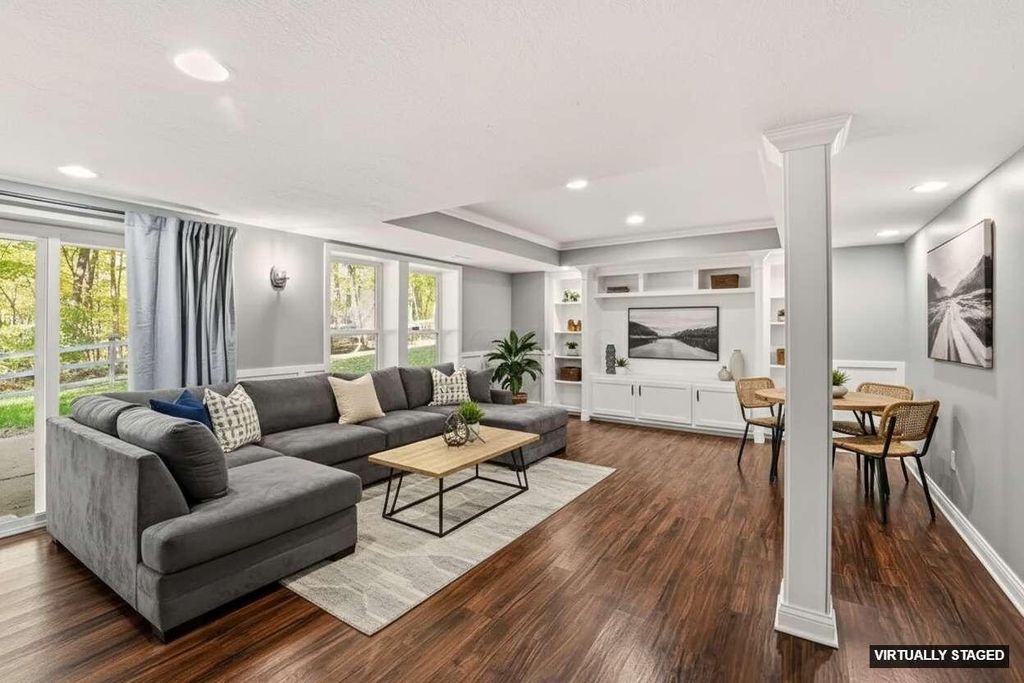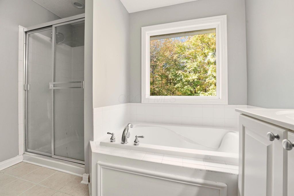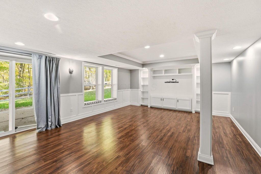 Freshly updated & move-In ready, with 3,154 sq. ft. of finished living space, this home feels brand new. Recent updates include a brand-new roof for peace of mind, fresh Paint throughout, including the garage, new carpet across all levels, and a brand-new refrigerator. The main level boasts tall ceilings and expansive windows that bathe the home in natural light while framing views of the lush, wooded backdrop. The fully fenced backyard (complete with an invisible fence) actually extends beyond the fence line, offering even more private wooded land to explore. There are amazing spaces for everyone! The upper level includes a large primary suite featuring a deep walk-in closet and private primary bath. There are three additional spacious bedrooms with large closets, and a second full bath off of the hallway. The Ultimate Walk-Out Lower Level; This fully finished level is built for fun, featuring a wet bar, dishwasher, built-in shelving, and a ''secret'' playroom that kids (and adults) will love. Huge 3-Car Garage: A hard-to-find feature in Lewis Center, equipped with hot and cold-water spigots. Outdoor Oasis; Step through the lower-level sliding glass doors to a covered concrete patio, or head up to the multi-tiered oversized deck to enjoy the sounds of nature. Whether you're hosting a summer BBQ or enjoying a quiet morning coffee, the indoor-outdoor flow is seamless and private. Excellent location close to Polaris, healthcare facilities, country clubs, parks, and much more. Note: Auditor site incorrectly lists bath count; this home features 3.5 bathrooms.