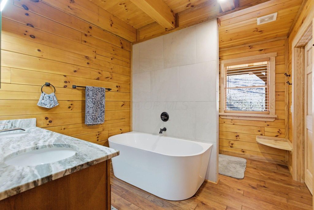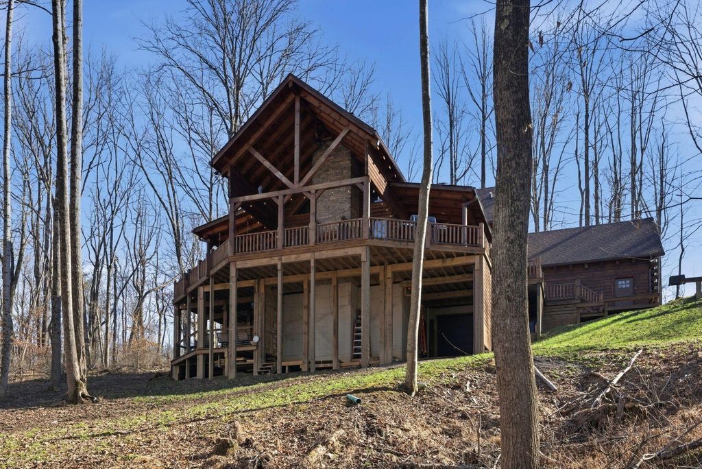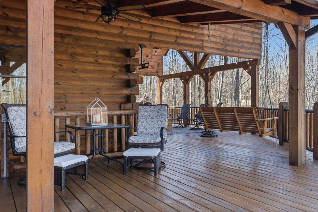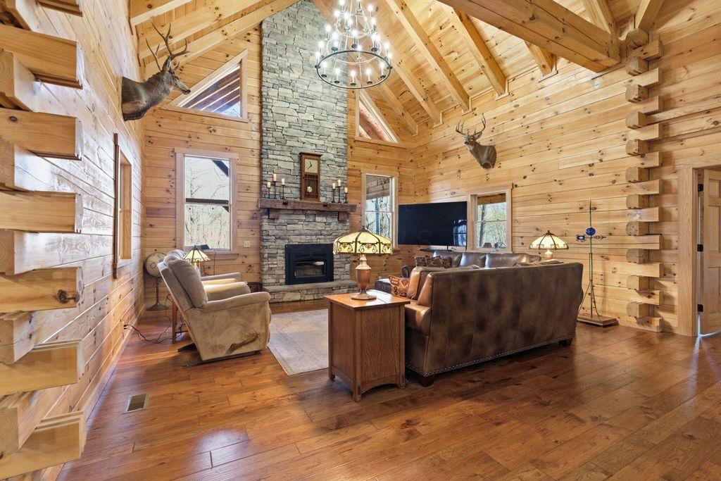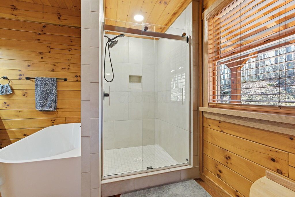 This extraordinary retreat offers a RARE opportunity to own a getaway on 3.17acres adjacent to the 9,800 protected acres of Hocking State Forest! This three-level LA Horn built luxury log cabin was custom designed for both relaxation and entertaining, featuring 5 bedrooms + ensuite baths, in addition to a loft area, to comfortably accommodate 20+ guests for large family gatherings, retreats, or short-term rental investment! The home's stunning two-story great room is filled with natural light and anchored by a dramatic sense of scale with the stacked stone fireplace. The gourmet kitchen features Kitchenaid appliances, a Reverse Osmosis water purification system, built in wine/beverage refrigerator, double convection oven, and butler's pantry with additional space for appliances. The open layout and walkout deck is ideal for hosting and catering to large groups. Step outside to two levels of expansive wraparound porches overlooking the private wooded landscape. Outdoor amenities elevate the experience with a saltwater hot tub, outdoor fireplace, fire pit, basketball recreation area, & sweeping views of the surrounding forest. The home features two levels of garage bays that provide potential to be converted to additional living or recreation space to maximize both lifestyle and investment opportunity. The property backs up to the Purple Trail for horseback riding, in addition to recreation of Hocking State Forest- providing owners and guests nearby access to hiking trails, swimming, camping, hunting, & fishing. Nearby attractions just minutes away include Rock House, Ash Cave, Old Man's Cave, Cantwell Cliffs and Lake Logan. In addition to no HOA, the home has Starlink high speed internet, a private well, and all electric- so minimal monthly bills to worry about! Whether you're seeking a luxury personal retreat, high-performing short-term rental, or both, this one-of-a-kind property offers the space and location to be unforgettable!