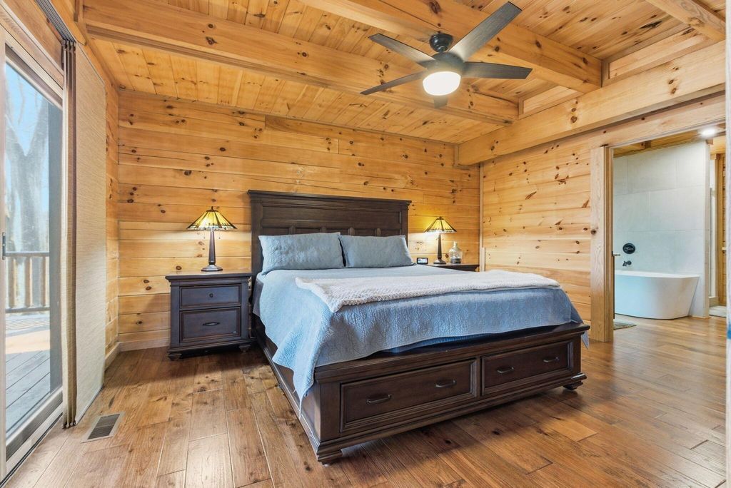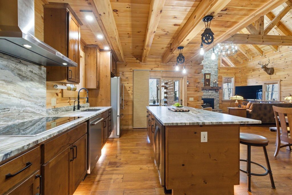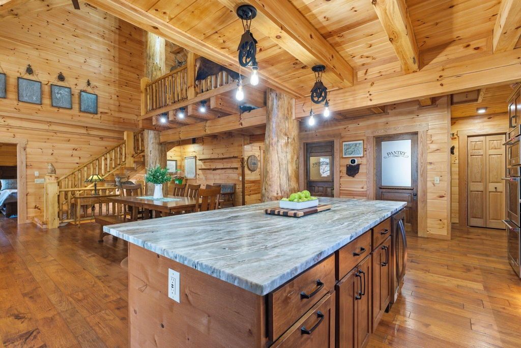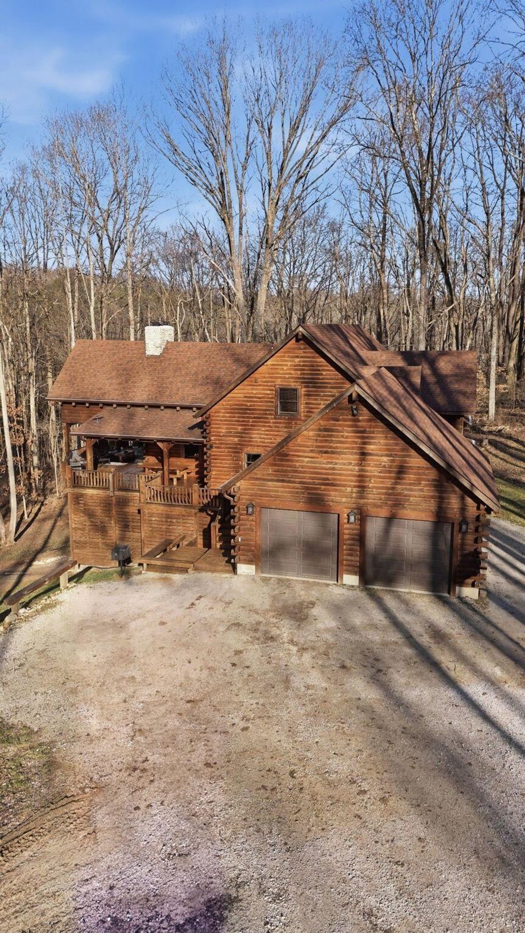 This extraordinary retreat offers a RARE opportunity to own a getaway on 3.17acres adjacent to the 9,800 protected acres of Hocking State Forest! This three-level LA Horn built luxury log cabin was custom designed for both relaxation and entertaining, featuring 5 bedrooms + ensuite baths, in addition to a loft area, to comfortably accommodate 20+ guests for large family gatherings, retreats, or short-term rental investment! The home's stunning two-story great room is filled with natural light and anchored by a dramatic sense of scale with the stacked stone fireplace. The gourmet kitchen features Kitchenaid appliances, a Reverse Osmosis water purification system, built in wine/beverage refrigerator, double convection oven, and butler's pantry with additional space for appliances. The open layout and walkout deck is ideal for hosting and catering to large groups. Step outside to two levels of expansive wraparound porches overlooking the private wooded landscape. Outdoor amenities elevate the experience with a saltwater hot tub, outdoor fireplace, fire pit, basketball recreation area, & sweeping views of the surrounding forest. The home features two levels of garage bays that provide potential to be converted to additional living or recreation space to maximize both lifestyle and investment opportunity. The property backs up to the Purple Trail for horseback riding, in addition to recreation of Hocking State Forest- providing owners and guests nearby access to hiking trails, swimming, camping, hunting, & fishing. Nearby attractions just minutes away include Rock House, Ash Cave, Old Man's Cave, Cantwell Cliffs and Lake Logan. In addition to no HOA, the home has Starlink high speed internet, a private well, and all electric- so minimal monthly bills to worry about! Whether you're seeking a luxury personal retreat, high-performing short-term rental, or both, this one-of-a-kind property offers the space and location to be unforgettable!