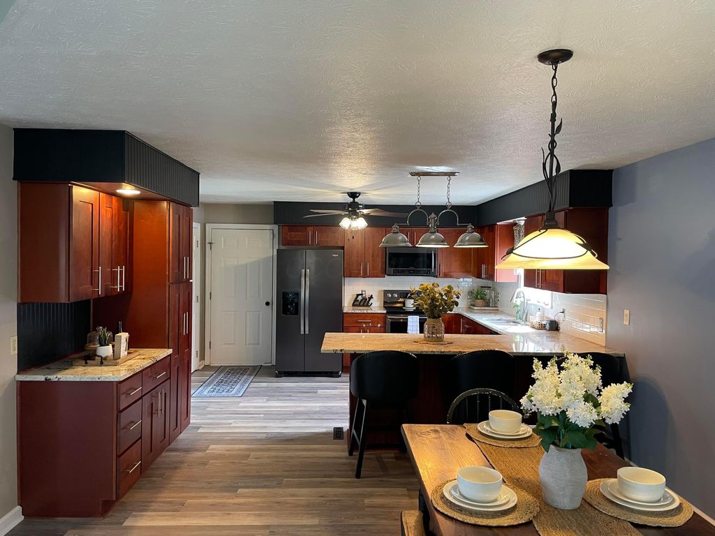 Welcome to 194 S. Bowman Road, Chillicothe, Ohio. If you are wanting more space and a gathering place for family and friends this home checks off all the boxes. Situated on .83/acres this gorgeous, well-maintained home offers a free-flowing layout on the main floor w/ new LVP flooring throughout, living room w/ fireplace, dining area, beautiful kitchen with stainless steel appliances, granite countertops and breakfast bar, a half bath, and enclosed back patio. On the second floor are the three bedrooms, two full bathrooms, and the primary suite with en-suite bathroom and a balcony to overlook the back garden/pool area. Plus an added bonus is the finished basement with a bar for entertaining, family room/rec room, and a half bath. Last and certainly not least you will love the amazing outdoor space while enjoying the in-ground pool or relaxing in the hot tub while listening to the serene sounds of the waterfall in the koi pond. Get your tour scheduled because you do not want to miss out on this home!