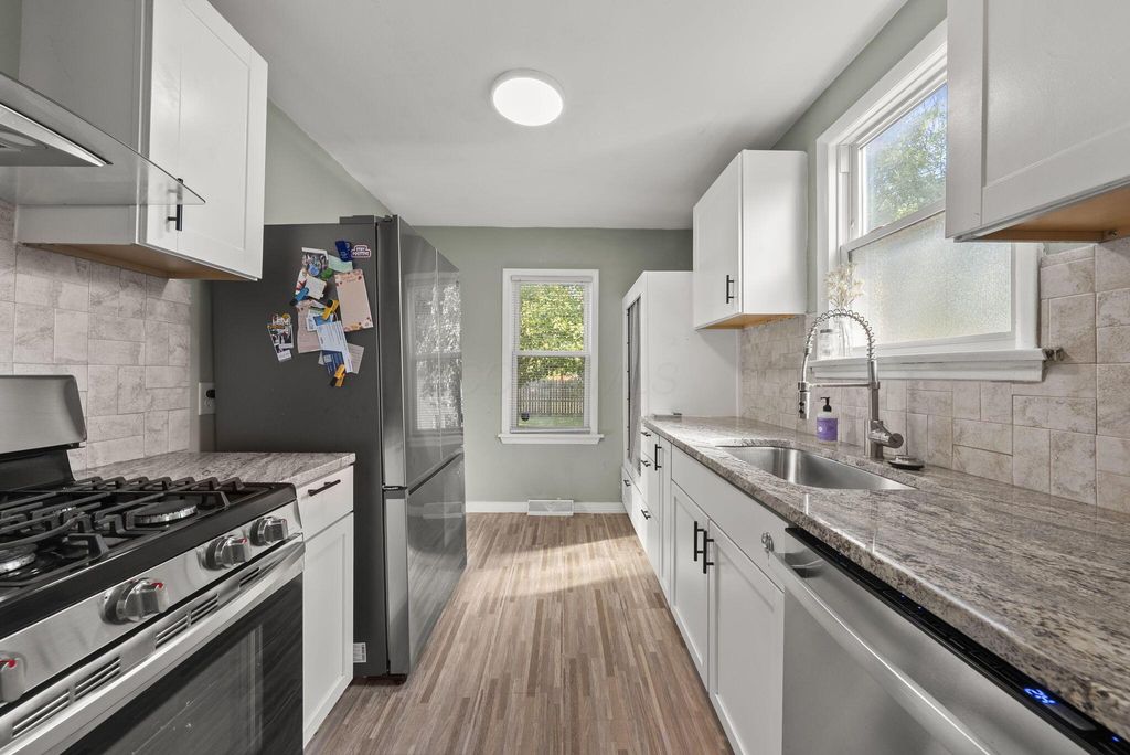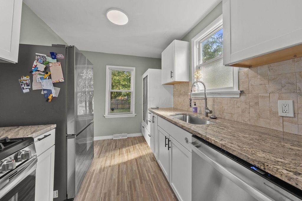 This delightful 2-bedroom, 1-bath home is full of charm inside and out. With its bright blue exterior, refreshed landscaping, and brand-new wood deck, curb appeal is instant. Step inside to find a light-filled interior featuring original hardwood floors and timeless details that create a warm, inviting atmosphere. Major updates give peace of mind, including a new roof and a waterproofed basement. The fully fenced yard and 1-car detached garage add both function and convenience. Ideally located just minutes from German Village, Olde Towne East, and all that downtown Columbus has to offer, this home blends character, comfort, and location in one perfect package.