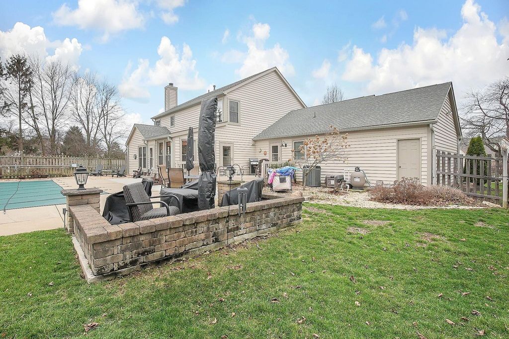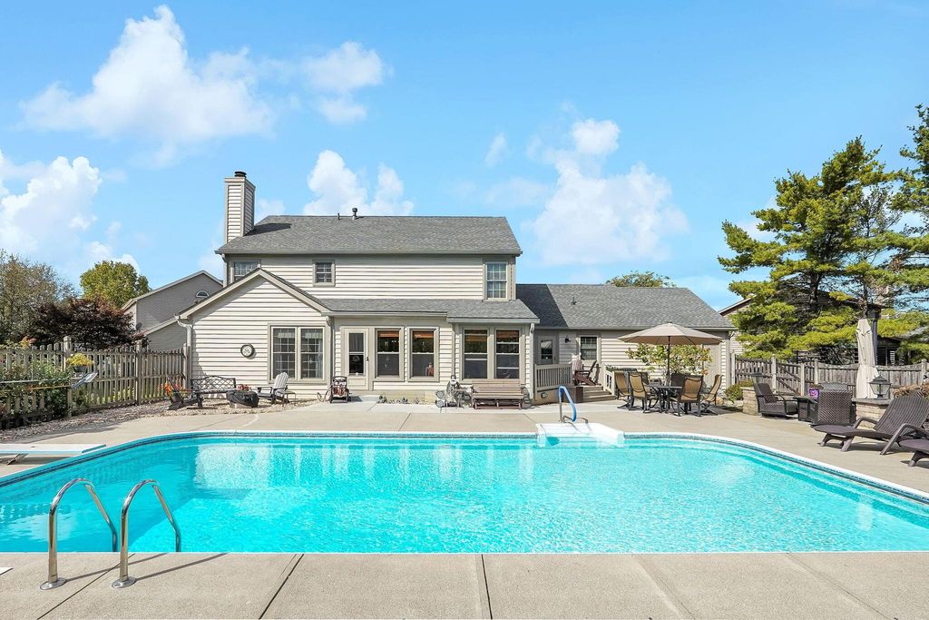 This pristine home in Windsor Bay has been beautifully maintained by owner for 30 years. Welcome to the perfect balance of style, space and quality. Enter through the front foyer to a fully remodeled chef's kitchen featuring solid wood cabinets, double oven, SS appliances, island, pantry and eating area. The Kitchen flows into a spacious great room showcasing an attractively white-tiled gas fireplace. First floor continues with den/office and a formal dining room, which may be used as additional den/office or playroom. Second floor features 4 bedrooms and 2 baths. Renovated owner's suite with ensuite bathroom featuring white cabinets, dual sinks, soaking tub, tile shower, quartz countertops, updated lighting fixtures and plenty of natural light. Full bath on 2nd floor also updated with white vanities, granite counter tops and modern lighting fixtures. Finished lower level offers additional living space or fitness area, with a half bath. Freshly painted rooms in warm neutral colors. All on a secluded cul-de sac, 1/3 ac. lot and 3 car garage. Access the large season room off the kitchen and view the gorgeous professionally landscaped backyard. Your backyard oasis is complete with heated swimming pool, extensive concrete patio, lush green space, and a fully enclosed fence. ENJOY SUMMER IN YOUR NEW HOME! New roof in 2024.