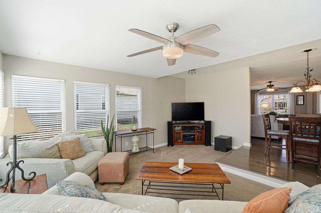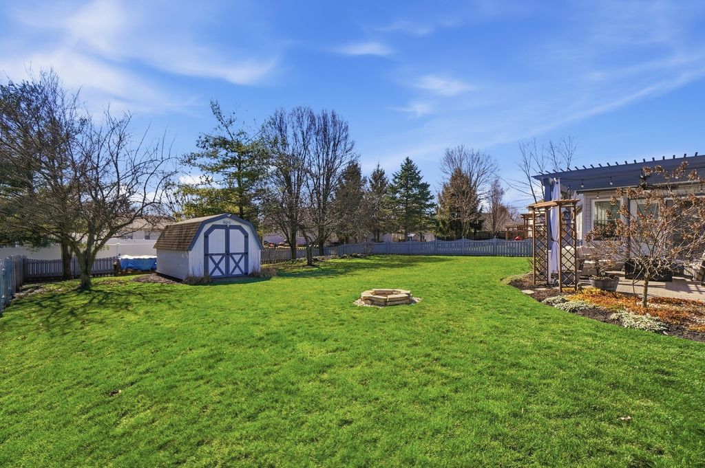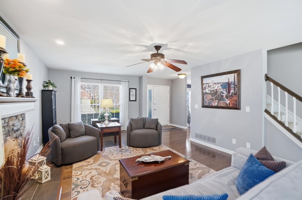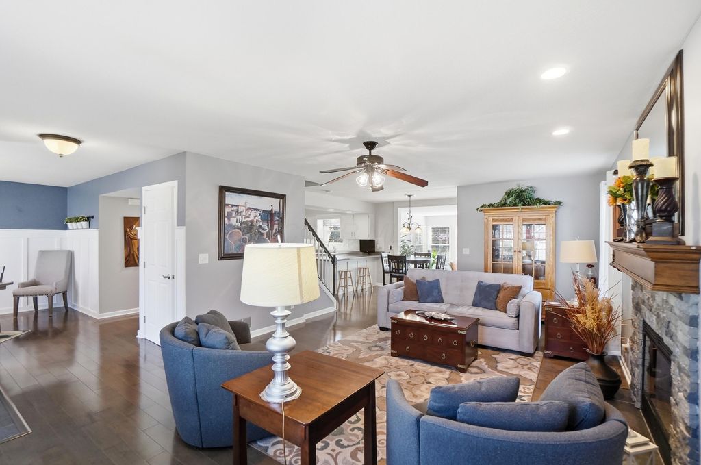 Pristine two-story home located in the desirable neighborhood of Lexington Glen! This is an Ackley built home! Beautiful engineered wood flooring flows throughout the main level. The formal dining room and formal living room welcome you at the front of the home, featuring a new fireplace surround that creates a cozy and inviting space -- perfect for relaxing or entertaining. The updated kitchen features bar seating, and a bright eat-in area. The eat-in space opens to a large four-season room providing an additional 230 square feet of freshly painted living space -- in addition to the overall square footage -- creating a cozy spot to unwind with windows galore and abundant natural light. The laundry room is conveniently located just off the kitchen. Upstairs, you'll find three bedrooms and two spacious full baths (all have walk-in closets!) The primary suite includes its own newly updated private bath. The finished basement offers a private office or potential fourth bedroom (with a walk-in closet!), a recreation room, and ample storage space. Step outside to a beautifully maintained, fenced backyard complete with a storage shed with power, access doors from both the garage and sunroom, and a paver patio with a pergola and outdoor rated ceiling fan-perfect for entertaining. This home has had only two owners, and the current owners have lovingly and meticulously maintained it for 26 years. Ideally located near downtown Delaware, shopping, dining, and schools -- this home truly has it all. Welcome home!
