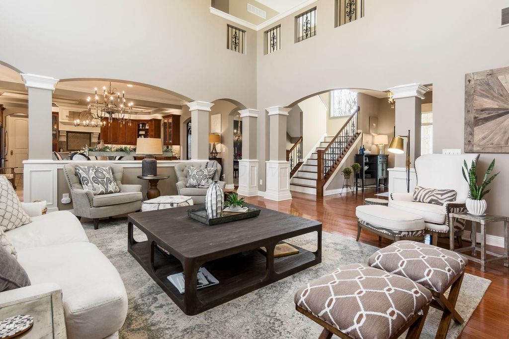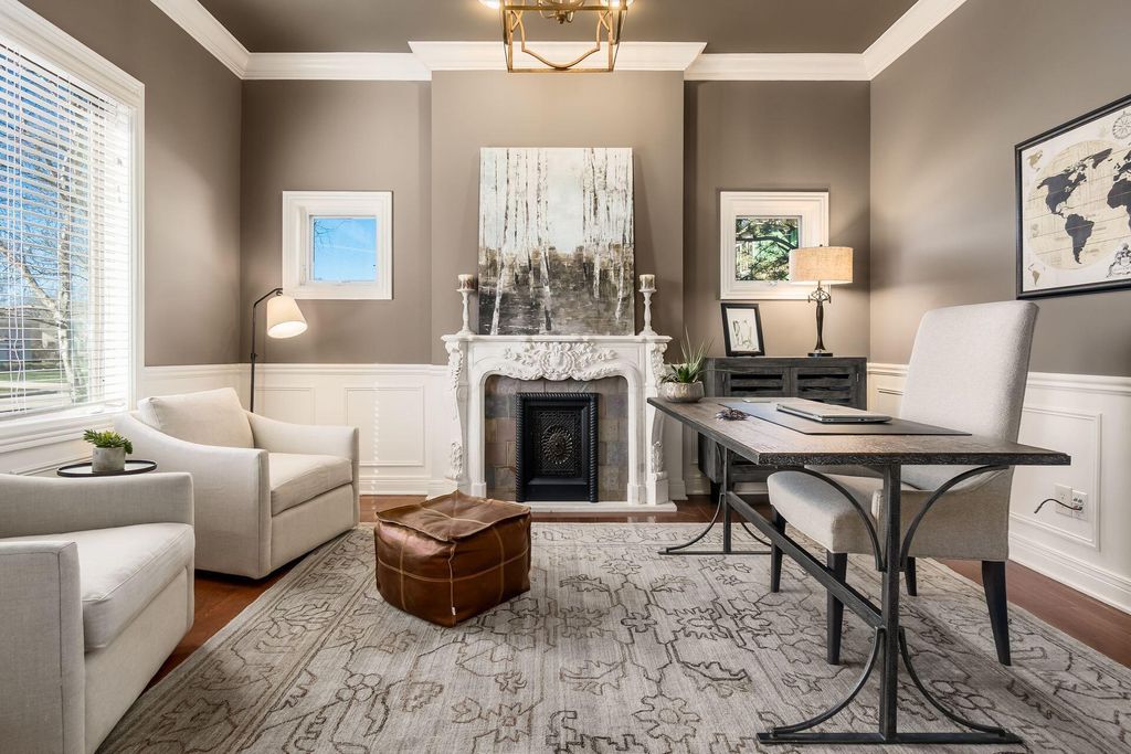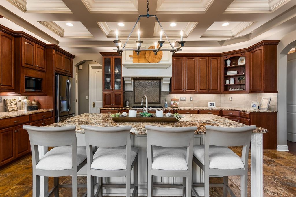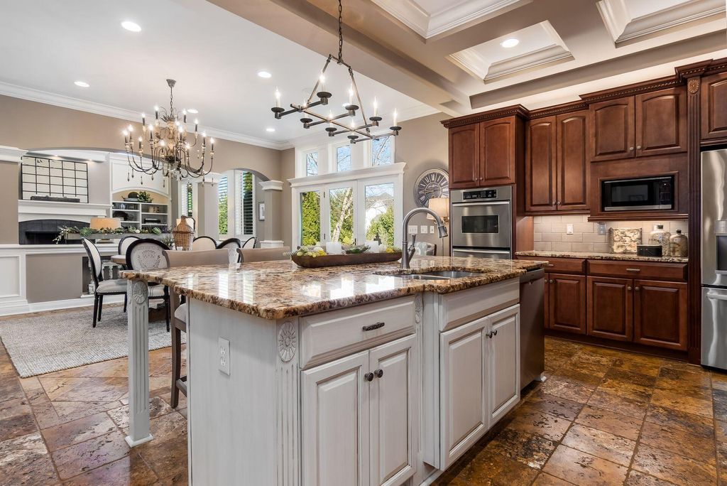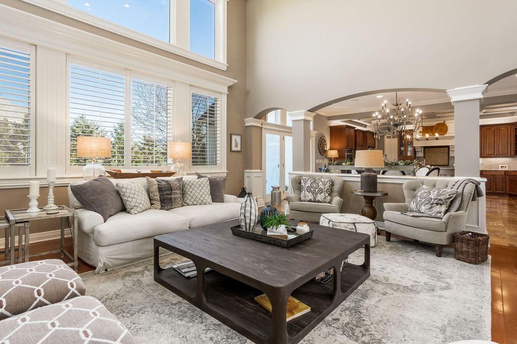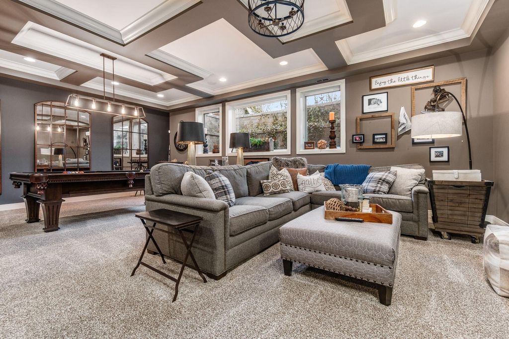 Situated on a large corner lot with a paver patio, this five bedroom, four and a half bath home offers high-end finishes from floor to ceiling and an abundance of living space. Step through the large, welcoming foyer into the great room offering a gorgeous feature wall with gas fireplace and custom built-ins adjacent to a wall of windows. The great room flows seamlessly into the gourmet kitchen which impresses with high-end stainless-steel appliances, granite counters, generous cabinetry, island seating, a large pantry, and a casual dining space overlooking the backyard. A private home office with a second fireplace and French doors provides ideal work-from-home space, and a half bath, large laundry room, formal dining space, and mud room complete the main floor layout. The finished lower level is filled with natural light from egress windows and showcases gorgeous ceiling details in the media/rec space which is open to the cozy bar/kitchenette. Also in the lower level you'll find the fifth bedroom and fourth full bath. Upstairs, all bedrooms are spacious, especially the primary suite with a massive custom closet and a private full bath with two separate vanities, large shower, and a relaxing soaking tub. The second bedroom has a private full bath while the third and fourth bedrooms share a third full bath. Welcome home!