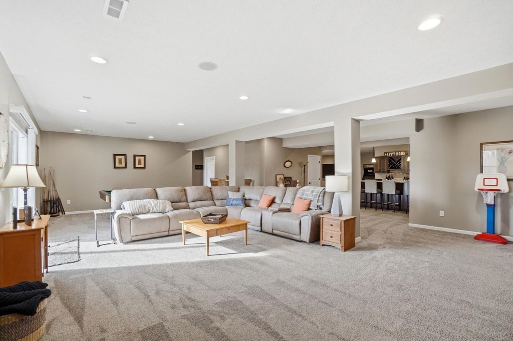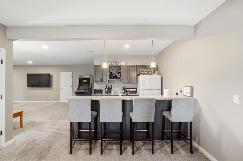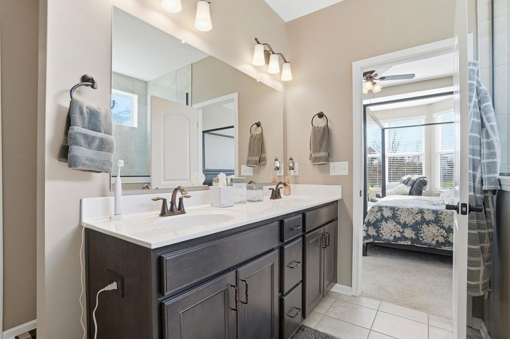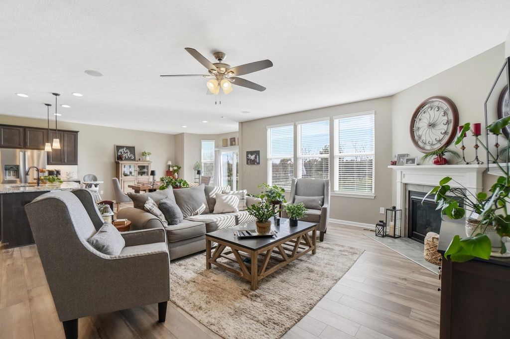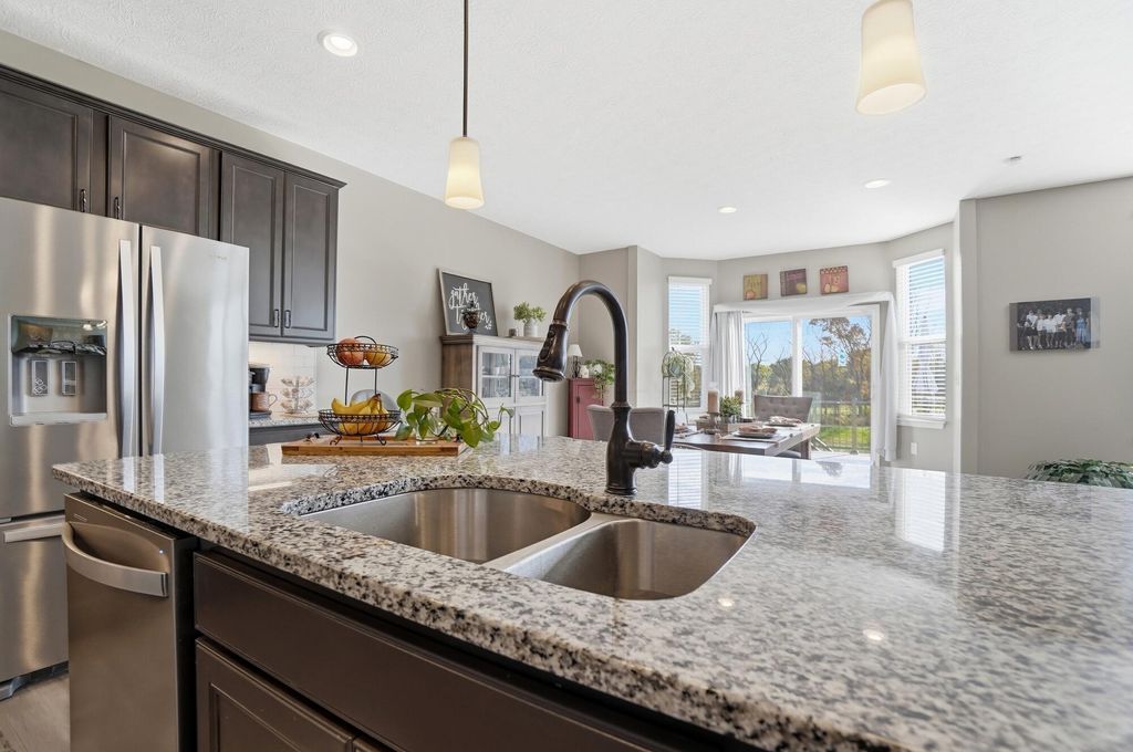 OPEN HOUSE 3/14 from 1-3PM & 3/15 1-3PM! Welcome to this beautifully upgraded Pulte Builder in the sought-after Galena Pointe community, offering approx. 4,426 finished sq ft with 4 bedrooms and 3.5 baths on a premium walkout lot. The main level features luxury vinyl tile flooring, a private den with double doors, and bay windows in the eat-in kitchen and Owner's Suite. The gourmet kitchen showcases built-in stainless steel gas appliances, 42'' Flagstone maple cabinets, Luna Pearl granite countertops, a stylish tile backsplash, and pendant lighting. The finished walkout basement includes 9' ceilings, a bedroom, and full bath--perfect for guests or additional living space. With over $114K in upgrades, including a tankless water heater, smart garage opener, and beautiful exterior finishes, this home offers style, space, and modern comfort.