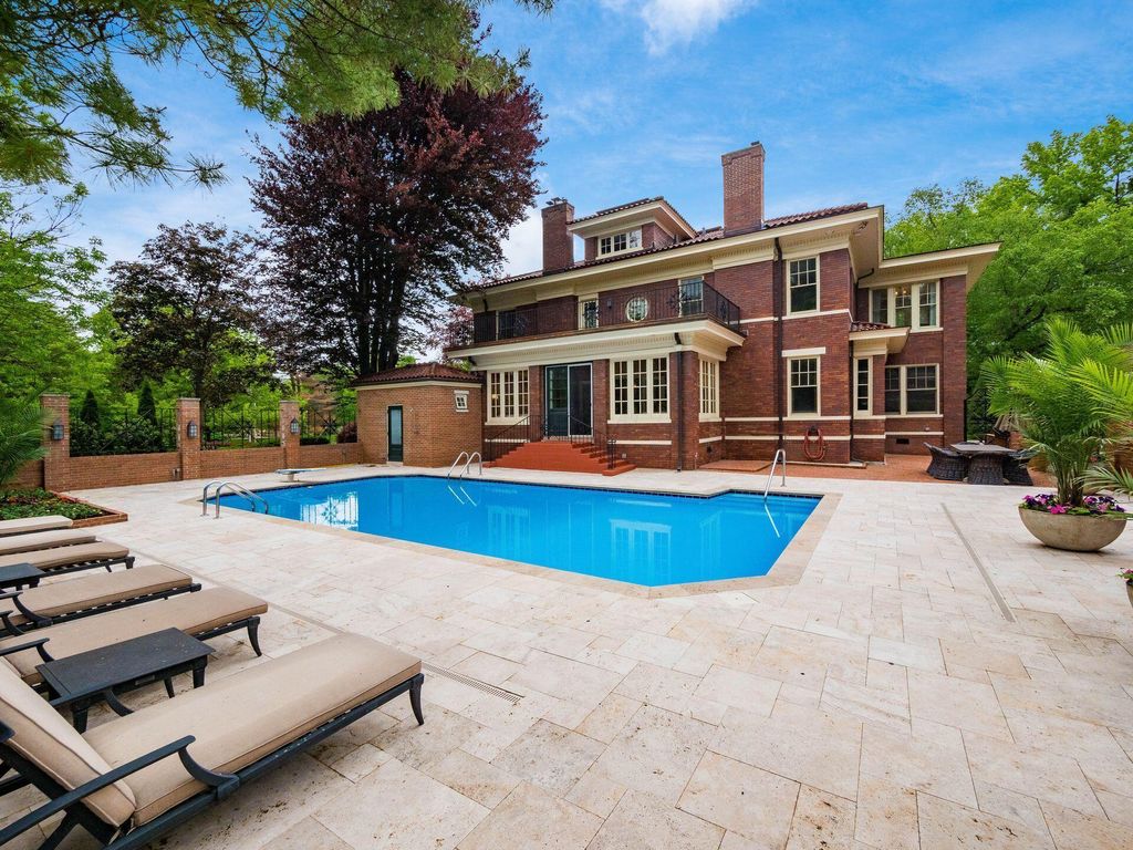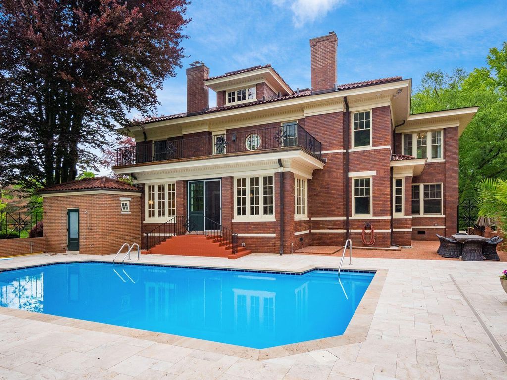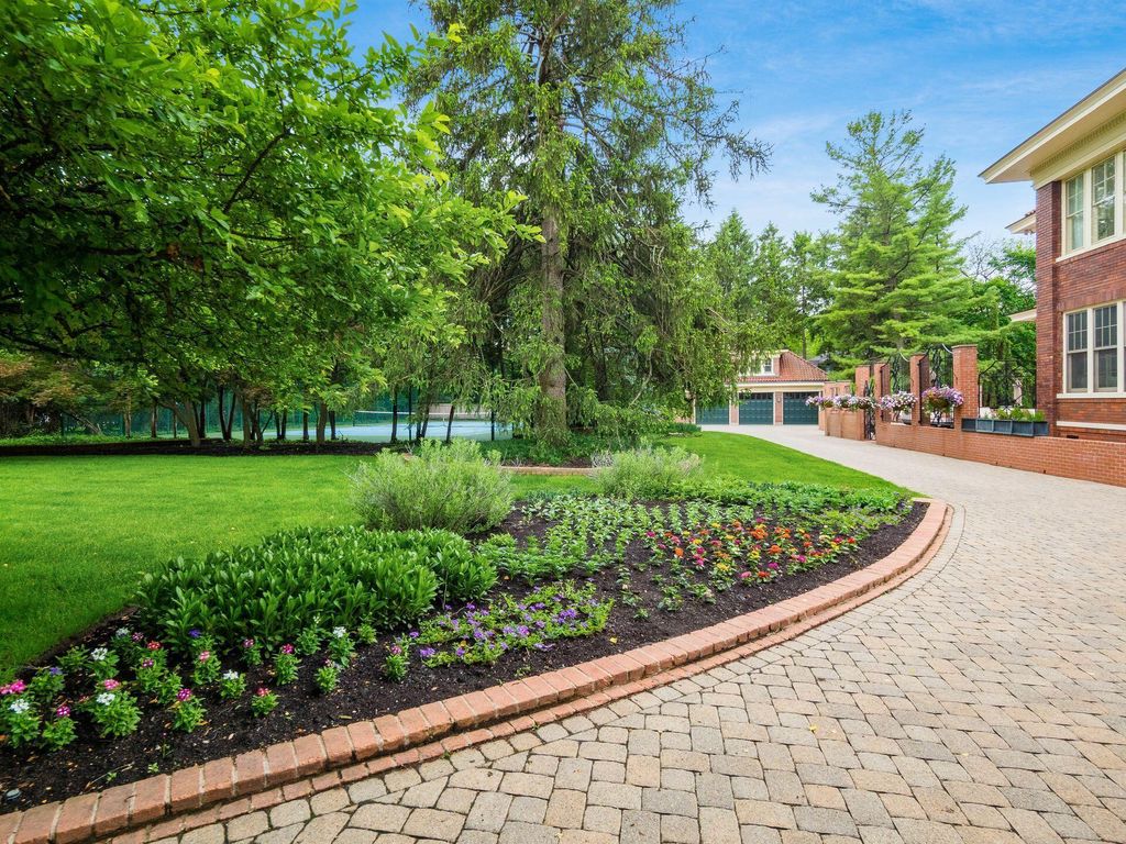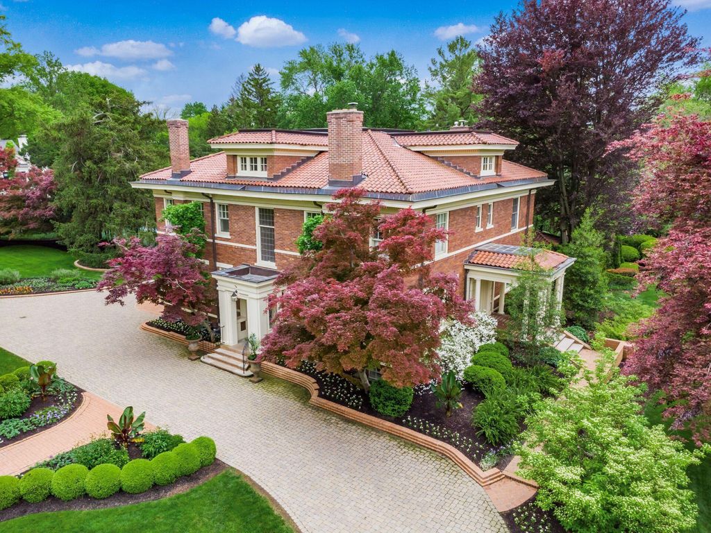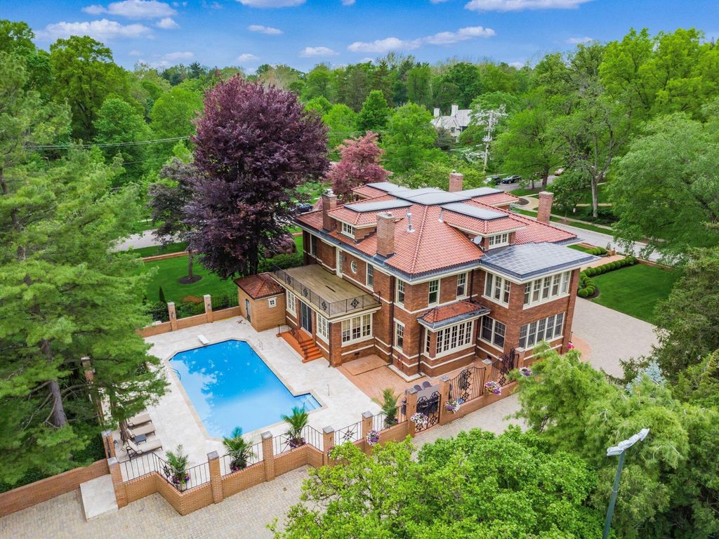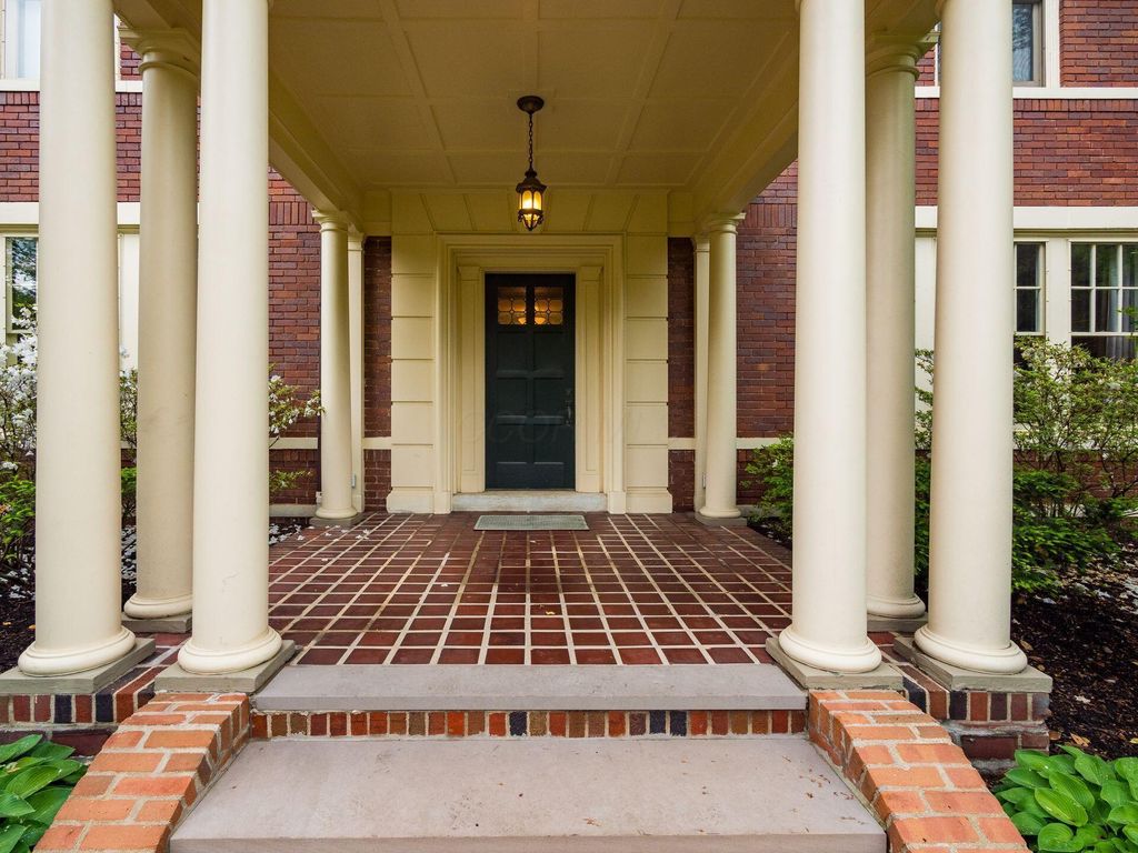 Experience the pinnacle of Bexley living with this incredible restored home on one of the city's finest settings. Spanning over 8,268 square feet across four finished levels, this three-story Missouri iron brick home, with a Mediterranean clay tile roof, marries elegance and function. It boasts five bedrooms and six and a half bathrooms in the main residence and an above garage studio equipped with a full bath and kitchenette. The first floor includes a grand entry foyer which sets the tone of this beautifully renovated home that embodies the original character while offering modern day amenities. The family room displays rich woodwork, custom shelving, and a fireplace. Entertainment size living and dining rooms with expansive modelings and coffered ceilings. Executive kitchen with custom crafted Amish Cabinets. Sun-filled breakfast and mud rooms. The first level is completed by a sun room overlooking the pool and tennis court. Walk up the grand staircase to the second floor that houses four bedrooms and four updated full baths. The primary suite includes a walk-out mahogany sun deck, generous closet with custom shelving, and bath with soaking tub, amish cabinets, and marble. The third floor can be used as a family gathering space or sleeping quarters with three private built-in beds plus a bathroom and kitchenette. The lower level adds additional high-end entertaining space, workout area, full bath, 540 bottle temperature controlled wine cellar, private home theatre, and laundry. The grounds stretch across two lots which totaling 1.38+/- acres and include an in-ground concrete pool with terrazzo deck, bath house with Finlandia dry sauna, and a lighted tennis court. Brick three car heated detached garage. The HVAC system is zoned by floor and contributes to the large list of amenities offered. Semi-circular driveway, extensive lush landscaping, and art glass windows sprinkled throughout add an air of privacy and capture the beauty of this exceptional home!