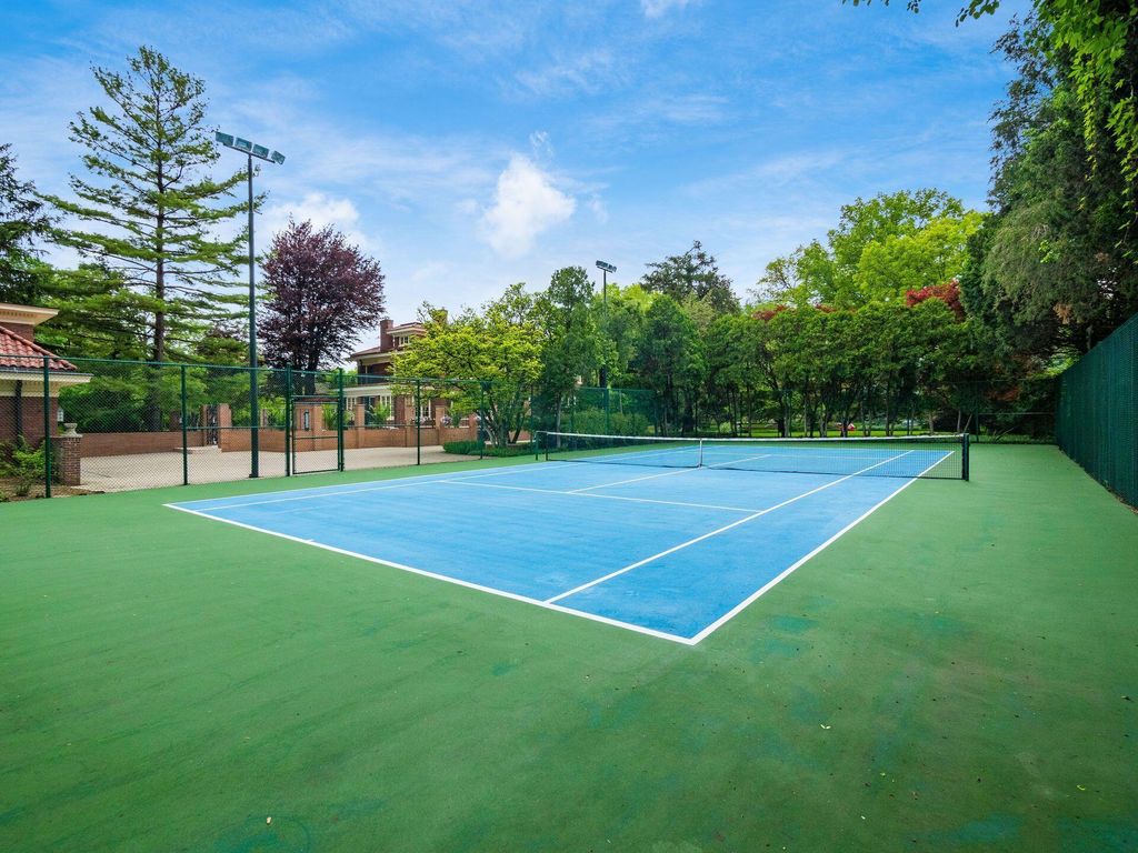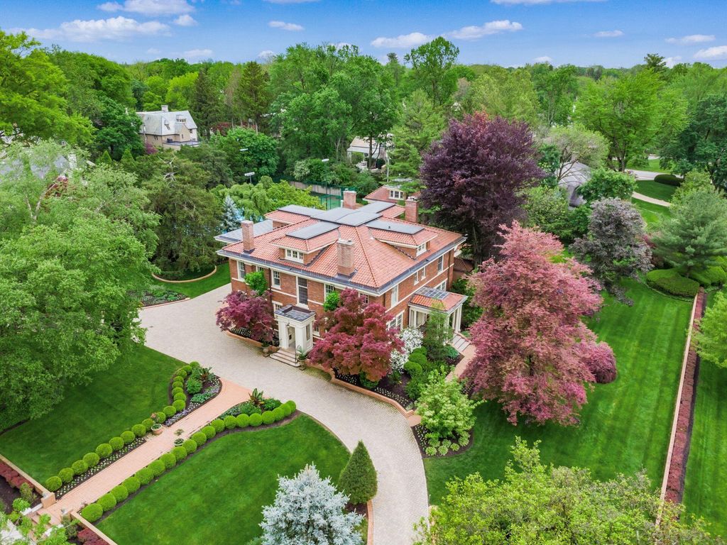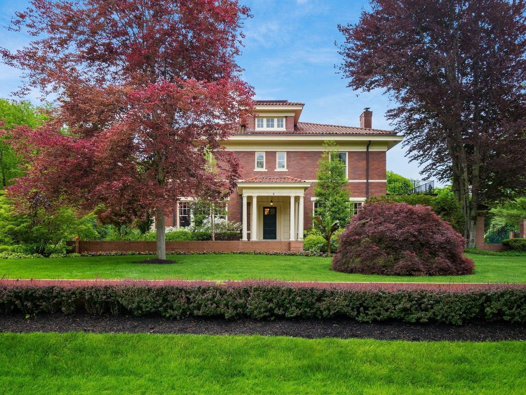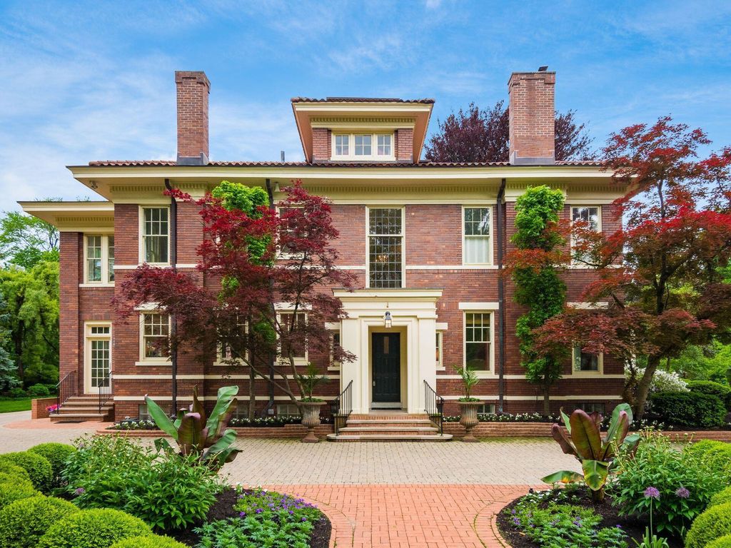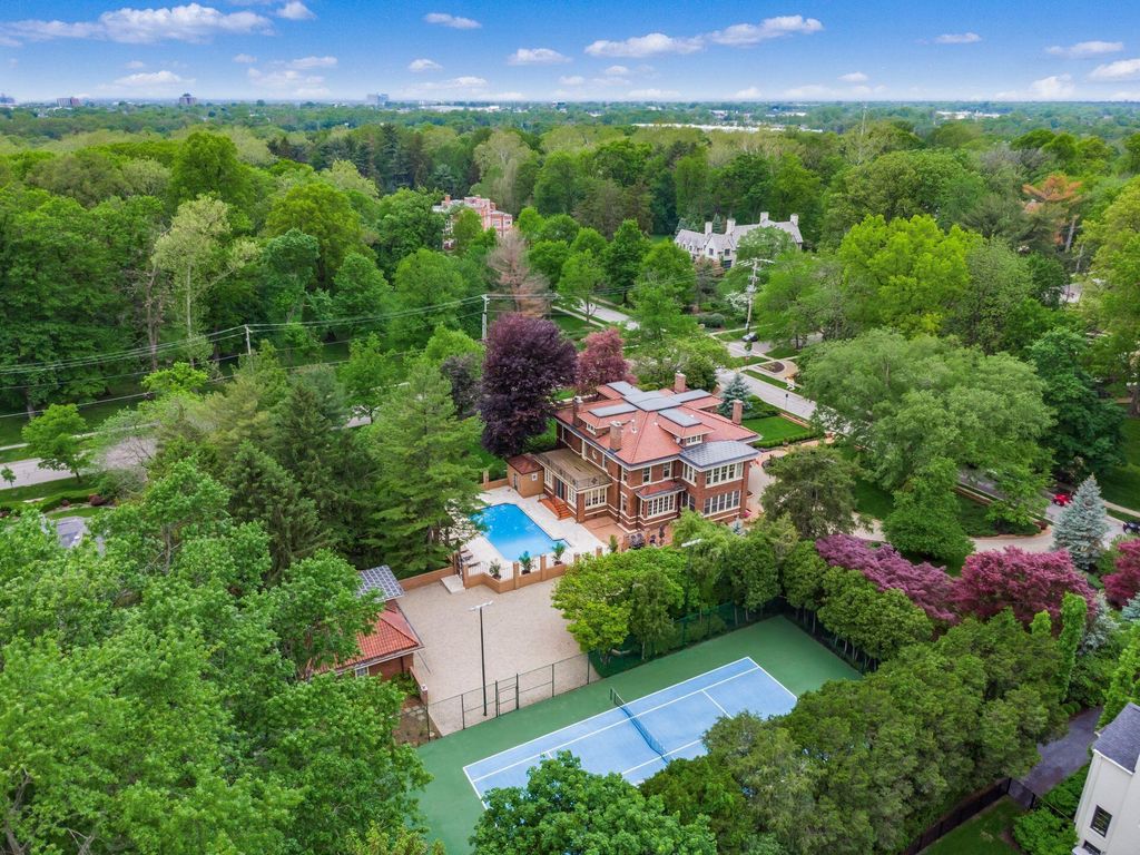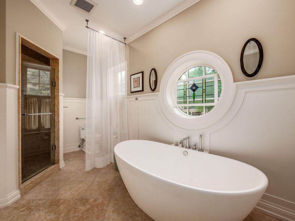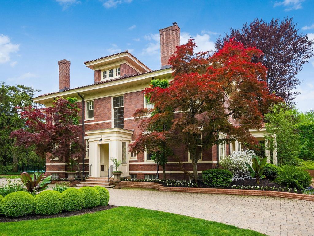 Experience the pinnacle of Bexley living with this incredible restored home on one of the city's finest settings. Spanning over 8,268 square feet across four finished levels, this three-story Missouri iron brick home, with a Mediterranean clay tile roof, marries elegance and function. It boasts five bedrooms and six and a half bathrooms in the main residence and an above garage studio equipped with a full bath and kitchenette. The first floor includes a grand entry foyer which sets the tone of this beautifully renovated home that embodies the original character while offering modern day amenities. The family room displays rich woodwork, custom shelving, and a fireplace. Entertainment size living and dining rooms with expansive modelings and coffered ceilings. Executive kitchen with custom crafted Amish Cabinets. Sun-filled breakfast and mud rooms. The first level is completed by a sun room overlooking the pool and tennis court. Walk up the grand staircase to the second floor that houses four bedrooms and four updated full baths. The primary suite includes a walk-out mahogany sun deck, generous closet with custom shelving, and bath with soaking tub, amish cabinets, and marble. The third floor can be used as a family gathering space or sleeping quarters with three private built-in beds plus a bathroom and kitchenette. The lower level adds additional high-end entertaining space, workout area, full bath, 540 bottle temperature controlled wine cellar, private home theatre, and laundry. The grounds stretch across two lots which totaling 1.38+/- acres and include an in-ground concrete pool with terrazzo deck, bath house with Finlandia dry sauna, and a lighted tennis court. Brick three car heated detached garage. The HVAC system is zoned by floor and contributes to the large list of amenities offered. Semi-circular driveway, extensive lush landscaping, and art glass windows sprinkled throughout add an air of privacy and capture the beauty of this exceptional home!