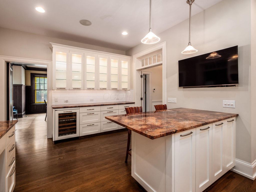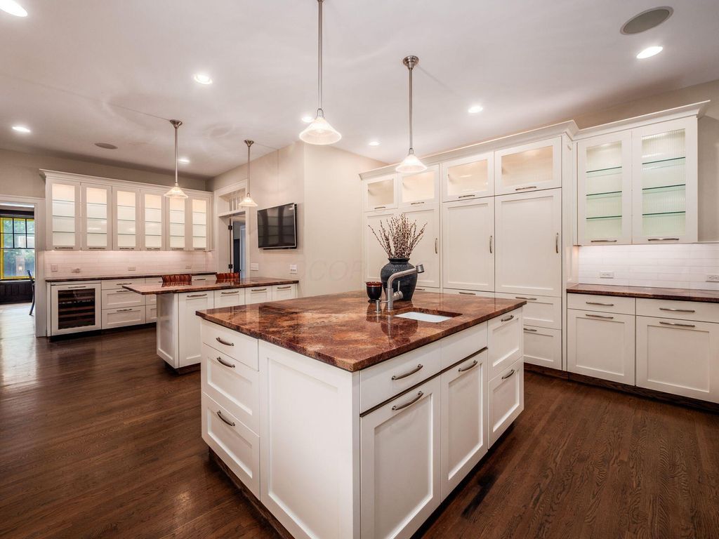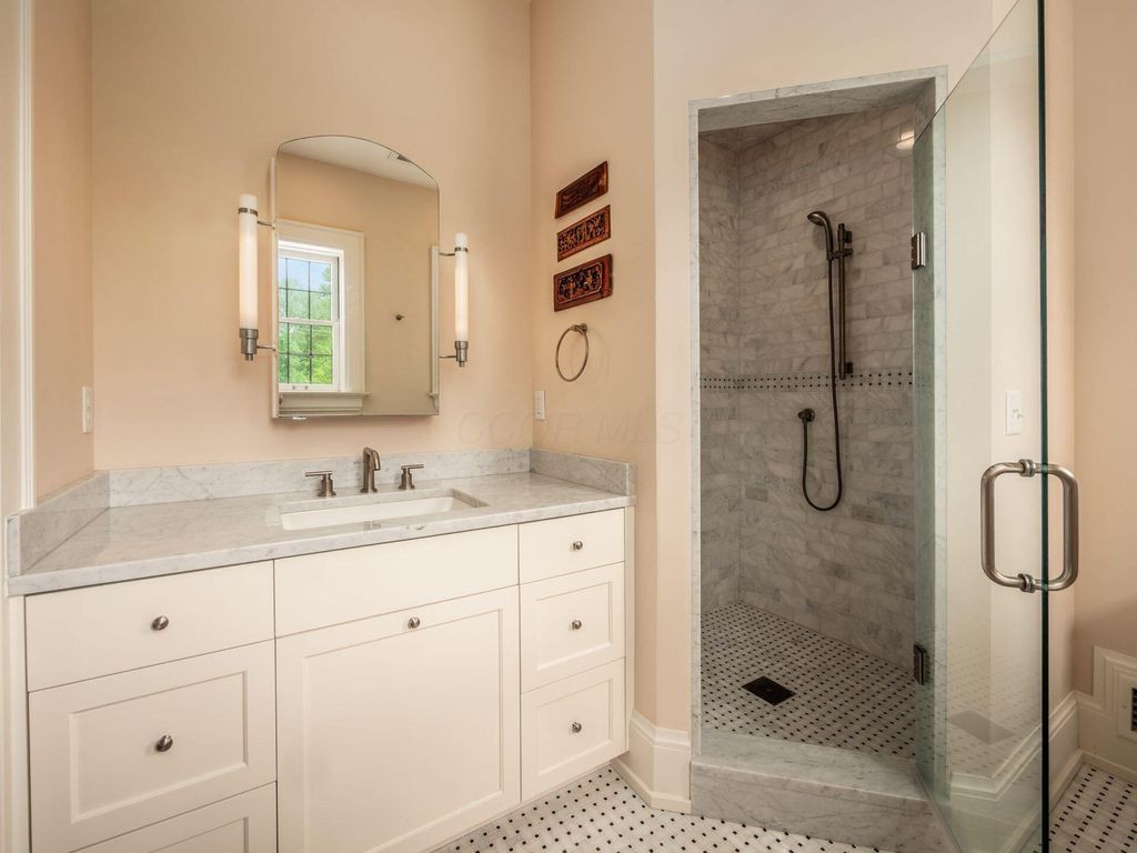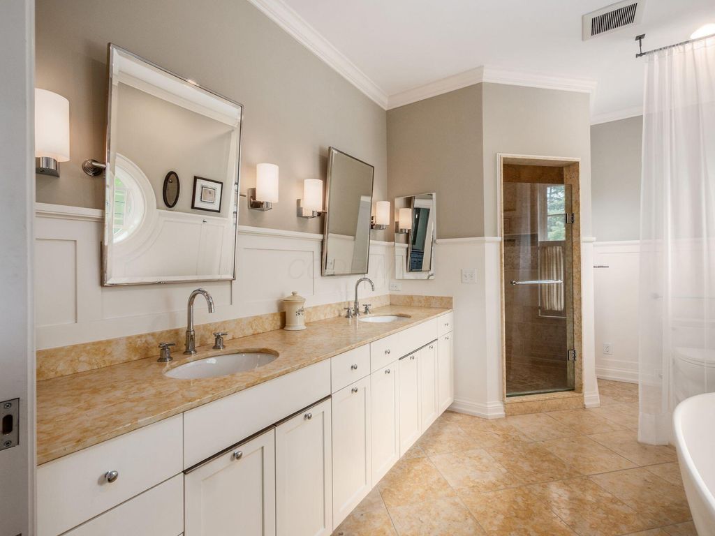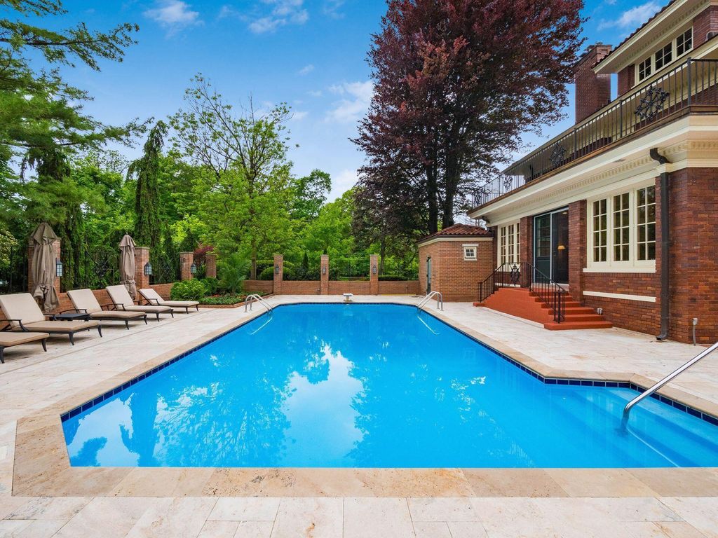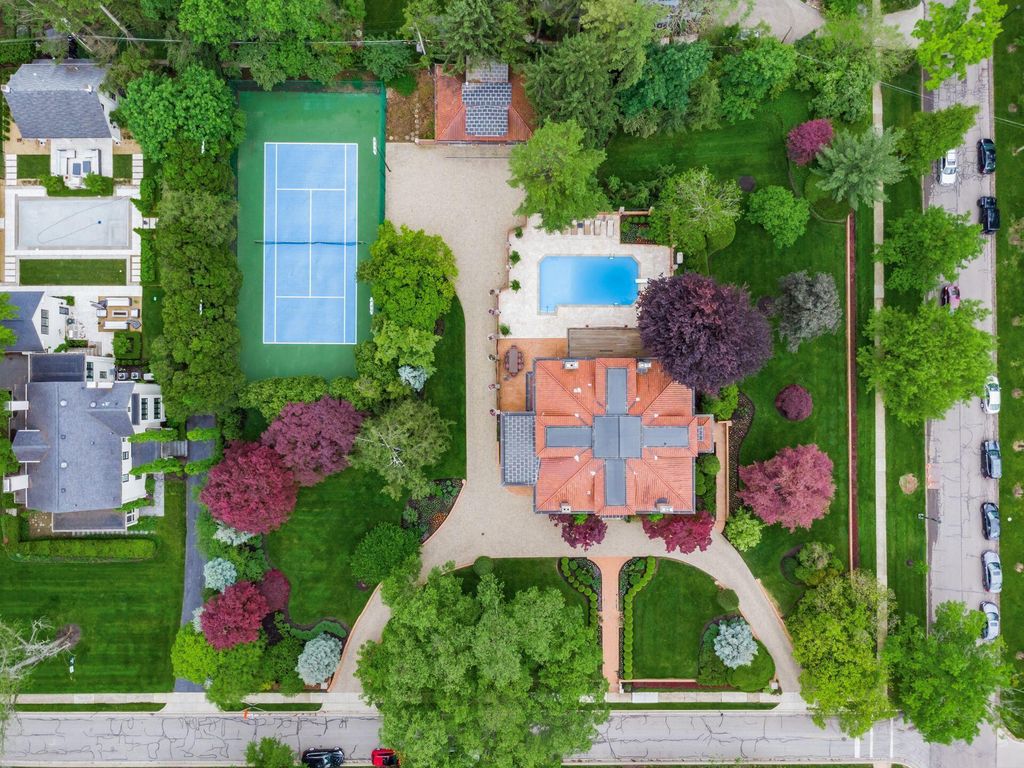 Experience the pinnacle of Bexley living with this incredible restored home on one of the city's finest settings. Spanning over 8,268 square feet across four finished levels, this three-story Missouri iron brick home, with a Mediterranean clay tile roof, marries elegance and function. It boasts five bedrooms and six and a half bathrooms in the main residence and an above garage studio equipped with a full bath and kitchenette. The first floor includes a grand entry foyer which sets the tone of this beautifully renovated home that embodies the original character while offering modern day amenities. The family room displays rich woodwork, custom shelving, and a fireplace. Entertainment size living and dining rooms with expansive modelings and coffered ceilings. Executive kitchen with custom crafted Amish Cabinets. Sun-filled breakfast and mud rooms. The first level is completed by a sun room overlooking the pool and tennis court. Walk up the grand staircase to the second floor that houses four bedrooms and four updated full baths. The primary suite includes a walk-out mahogany sun deck, generous closet with custom shelving, and bath with soaking tub, amish cabinets, and marble. The third floor can be used as a family gathering space or sleeping quarters with three private built-in beds plus a bathroom and kitchenette. The lower level adds additional high-end entertaining space, workout area, full bath, 540 bottle temperature controlled wine cellar, private home theatre, and laundry. The grounds stretch across two lots which totaling 1.38+/- acres and include an in-ground concrete pool with terrazzo deck, bath house with Finlandia dry sauna, and a lighted tennis court. Brick three car heated detached garage. The HVAC system is zoned by floor and contributes to the large list of amenities offered. Semi-circular driveway, extensive lush landscaping, and art glass windows sprinkled throughout add an air of privacy and capture the beauty of this exceptional home!