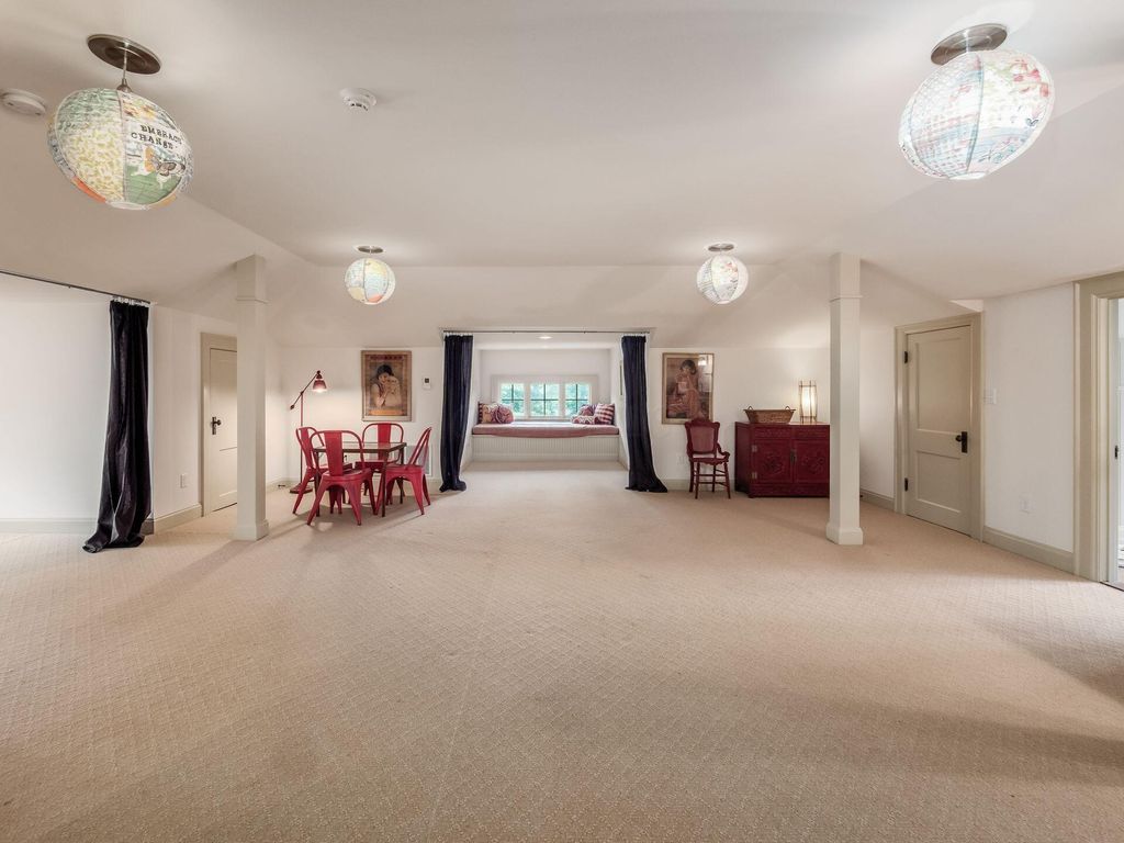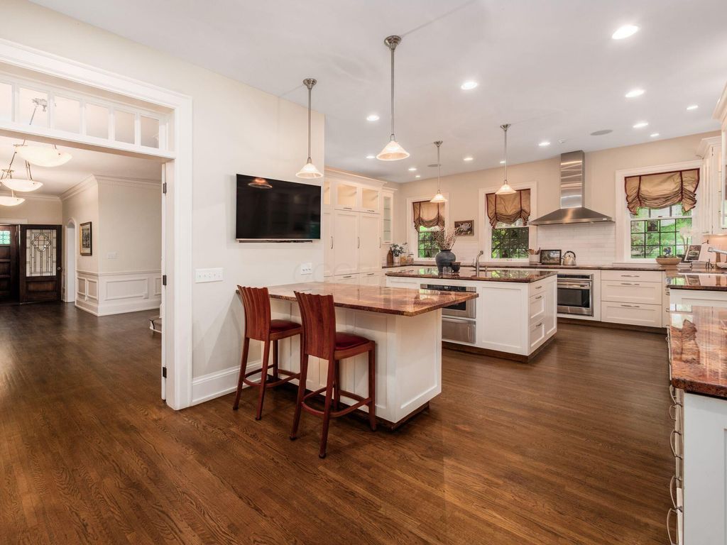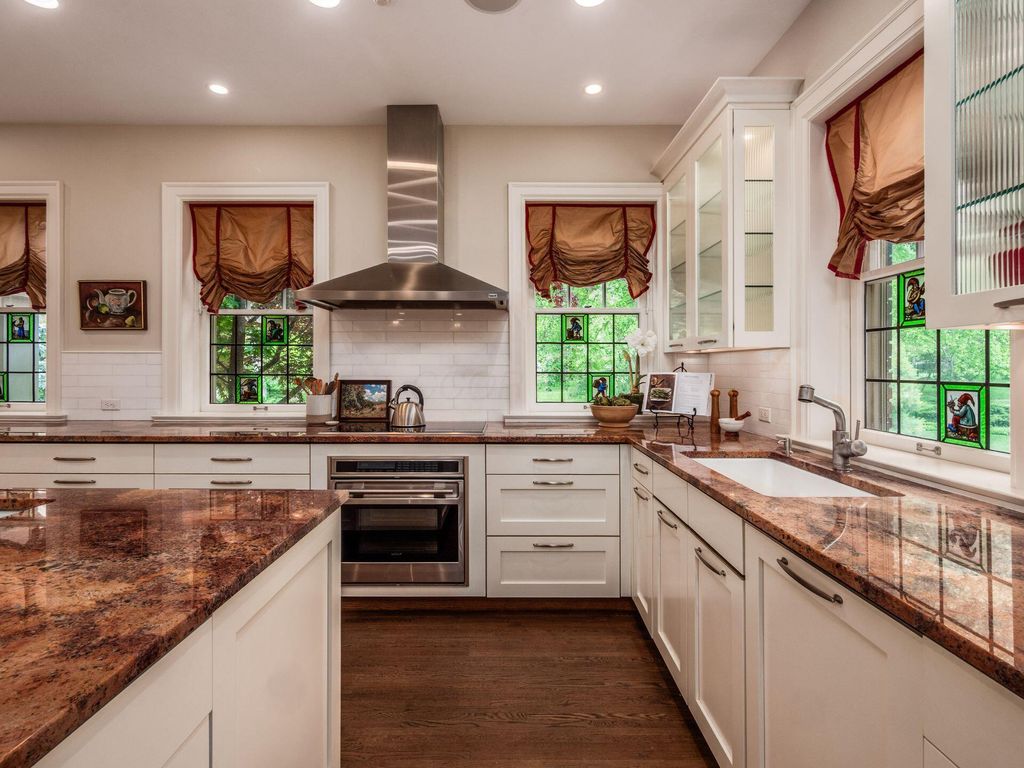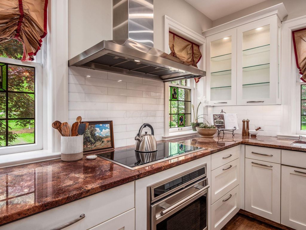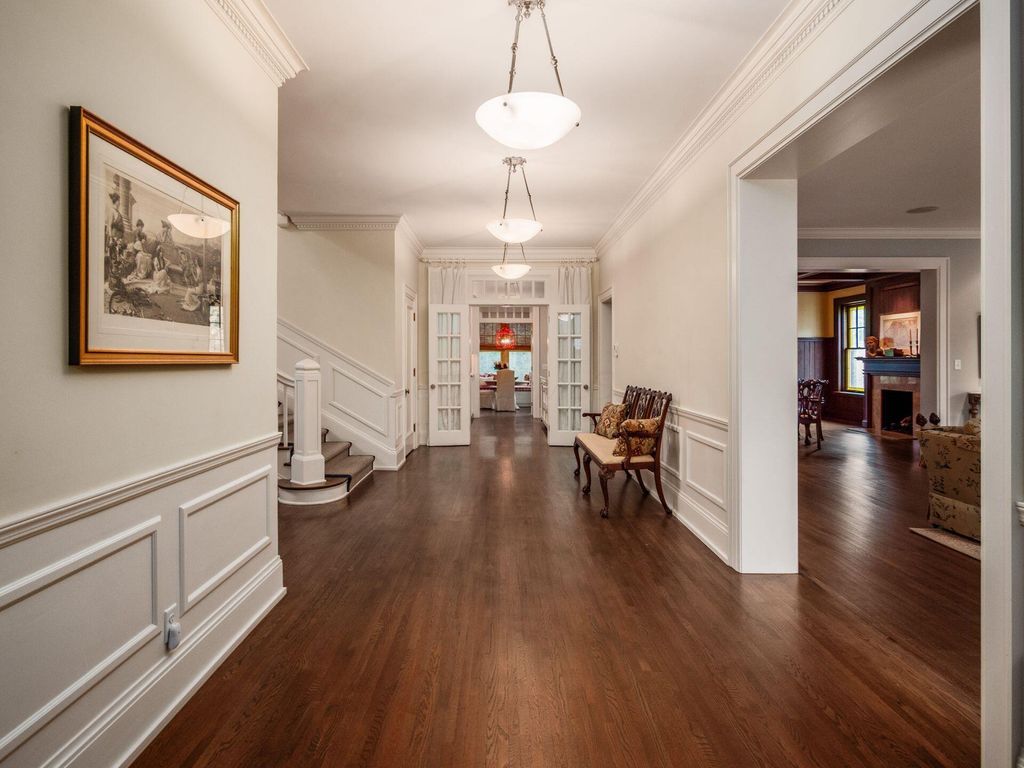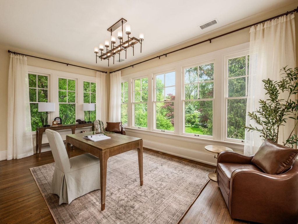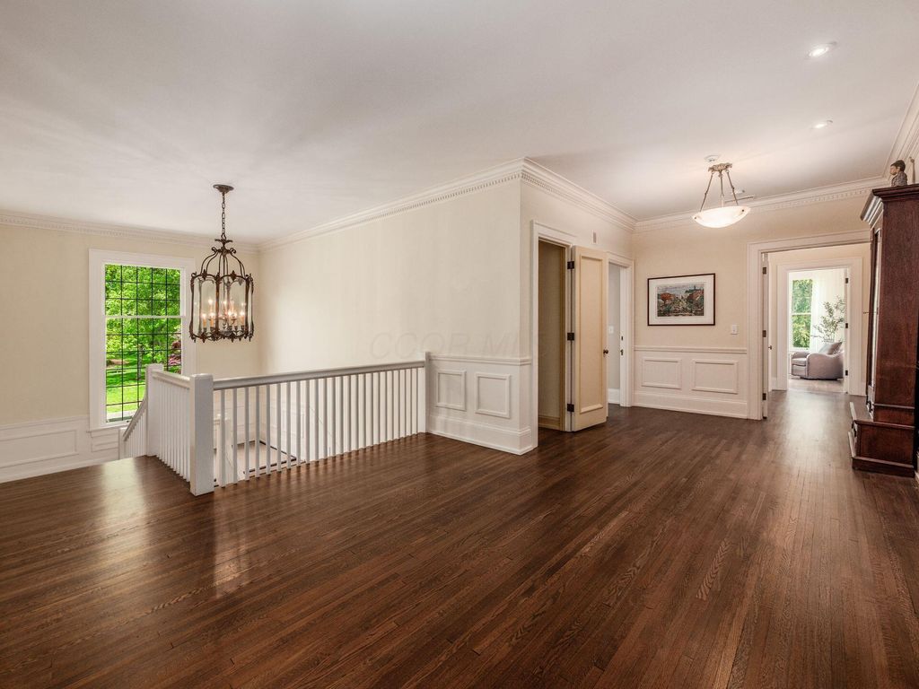 Experience the pinnacle of Bexley living with this incredible restored home on one of the city's finest settings. Spanning over 8,268 square feet across four finished levels, this three-story Missouri iron brick home, with a Mediterranean clay tile roof, marries elegance and function. It boasts five bedrooms and six and a half bathrooms in the main residence and an above garage studio equipped with a full bath and kitchenette. The first floor includes a grand entry foyer which sets the tone of this beautifully renovated home that embodies the original character while offering modern day amenities. The family room displays rich woodwork, custom shelving, and a fireplace. Entertainment size living and dining rooms with expansive modelings and coffered ceilings. Executive kitchen with custom crafted Amish Cabinets. Sun-filled breakfast and mud rooms. The first level is completed by a sun room overlooking the pool and tennis court. Walk up the grand staircase to the second floor that houses four bedrooms and four updated full baths. The primary suite includes a walk-out mahogany sun deck, generous closet with custom shelving, and bath with soaking tub, amish cabinets, and marble. The third floor can be used as a family gathering space or sleeping quarters with three private built-in beds plus a bathroom and kitchenette. The lower level adds additional high-end entertaining space, workout area, full bath, 540 bottle temperature controlled wine cellar, private home theatre, and laundry. The grounds stretch across two lots which totaling 1.38+/- acres and include an in-ground concrete pool with terrazzo deck, bath house with Finlandia dry sauna, and a lighted tennis court. Brick three car heated detached garage. The HVAC system is zoned by floor and contributes to the large list of amenities offered. Semi-circular driveway, extensive lush landscaping, and art glass windows sprinkled throughout add an air of privacy and capture the beauty of this exceptional home!