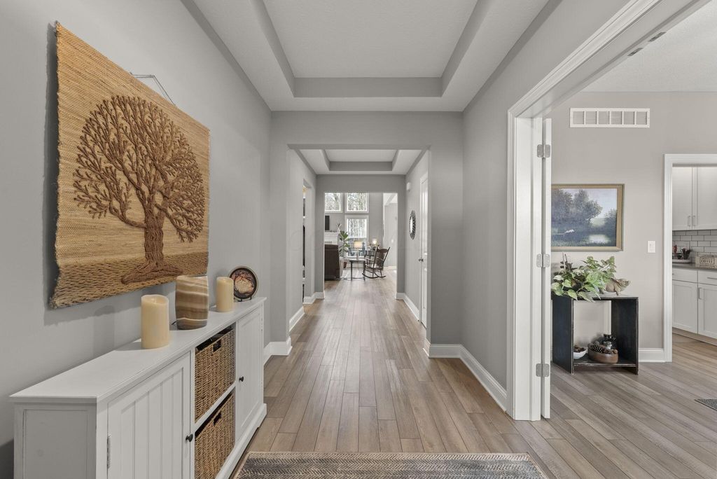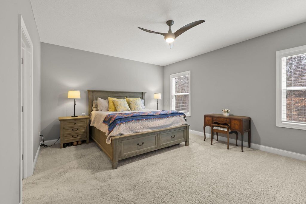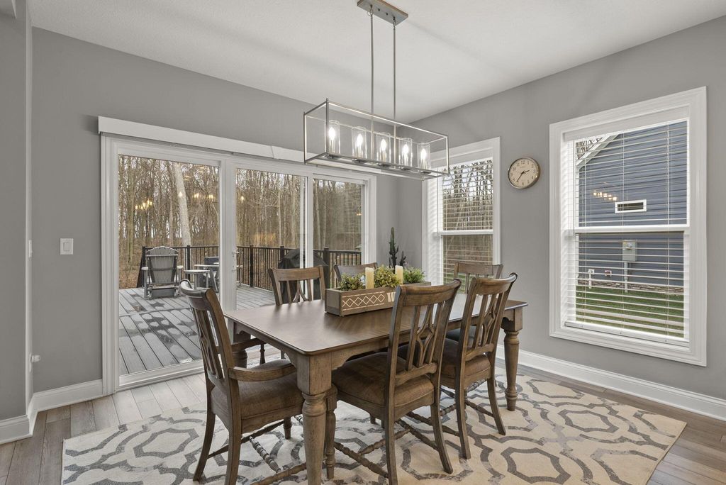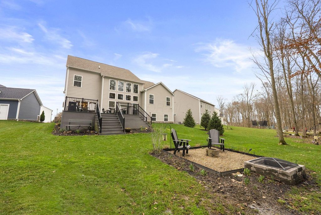 Have you been searching for a home that offers a private, tree-lined backyard to enjoy from a brand-new deck (approximately $24,000)? This outdoor oasis also features a fire pit area--perfect for relaxing evenings, roasting s'mores, and gathering under the stars, mature landscaping, and over 400 daffodil bulbs . Located in the desirable Mitchell Highlands community, this well-maintained 4-bedroom, 3.5-bath home backs to 40 acres of protected wooded reserve that will remain undisturbed. The open-concept kitchen and living area features a gas fireplace and a dramatic two-story wall of windows that fills the space with natural light and scenic views. The owner's suite offers dual walk-in closets and a private bath with double vanities, oversized shower, and water closet. Upstairs, two bedrooms share a Jack-and-Jill bath, while a fourth bedroom includes its own private full bath. The finished lower level provides flexible space for a family room, recreation area, playroom, or office. Additional features include a whole-house Generac generator, Conveniently located near major routes, shopping, dining, and everyday amenities. Welcome home.
