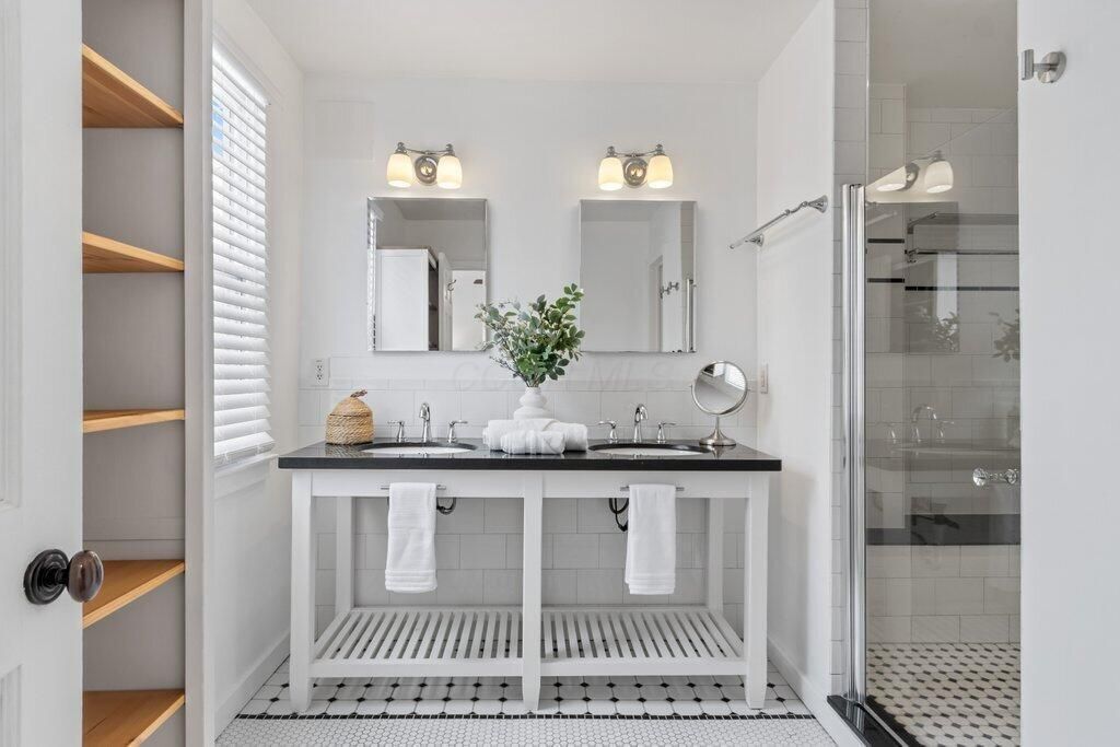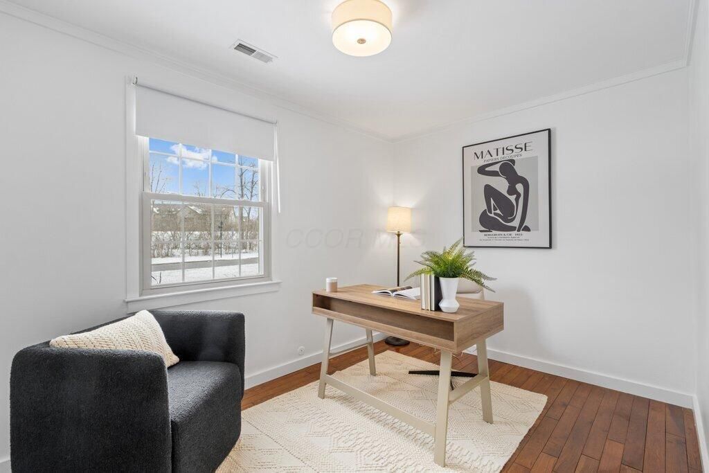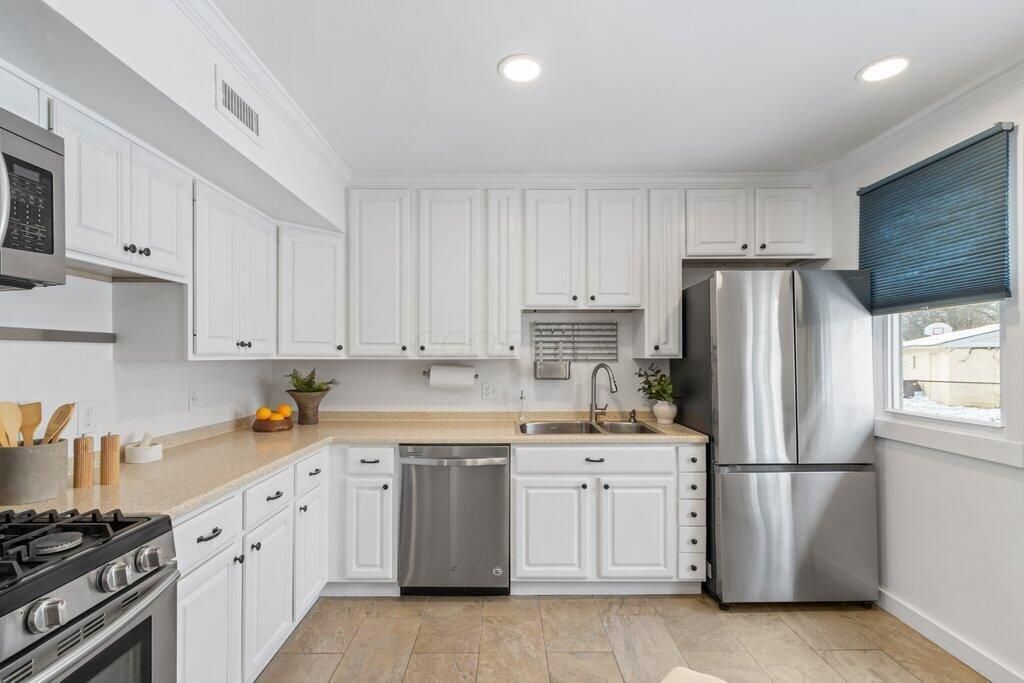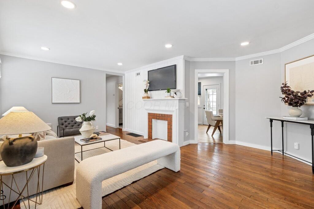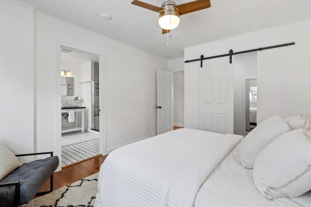 Welcome to Colonial Hills, located in the highly desirable northern suburb of Columbus; Worthington, Ohio! Stylish and move-in ready Ranch featuring flexible floor plan with the third bedroom currently used as a private home office. The entertaining-sized dining room, in addition to eating space in the kitchen, could easily function as a secondary seating area. Situated on a large corner lot across the street from Indianola Park with access to basketball and tennis courts, soccer field and playground. Location is just minutes from Historic Downtown Worthington's numerous shopping and dining experiences, including the award-winning Worthington Farmer's Market. Hardwood floors throughout the home and on-demand hot water. Primary bedroom with en suite bathroom featuring tall open vanity with double bowl sinks, beautiful tile-work and oversized shower with two showerheads. Second full bath is large and impressive. Fully fenced yard extends the living space with a deck off the kitchen for al fresco dining or lounging. Recent updates include new 2nd bath vanity, new light fixtures in 2nd and 3rd bedrooms, new stainless steel countertop-depth refrigerator, new exterior landscaping, new exterior lighting, new wooden shutters and accents, and newly tiled doorstep.Attached single-car garage with plenty of additional off-street parking with storage room and additional storage shed for all your gear. Inside the I-270 outerbelt, this conveniently located home is minutes from freeway access, downtown Columbus, The Ohio State University Main Campus, and Riverside Hospital. With convenience and great schools, welcome home to Worthington!