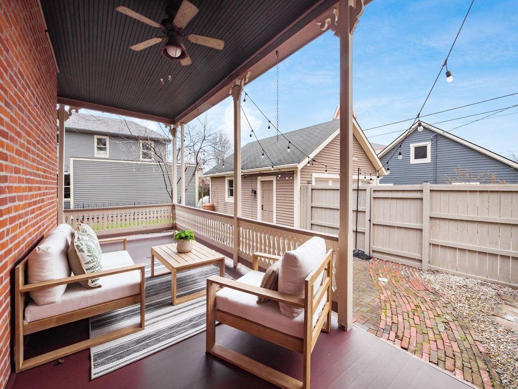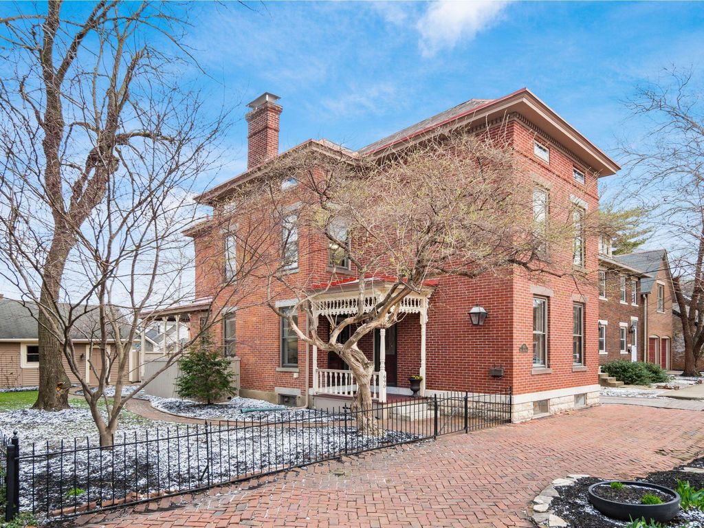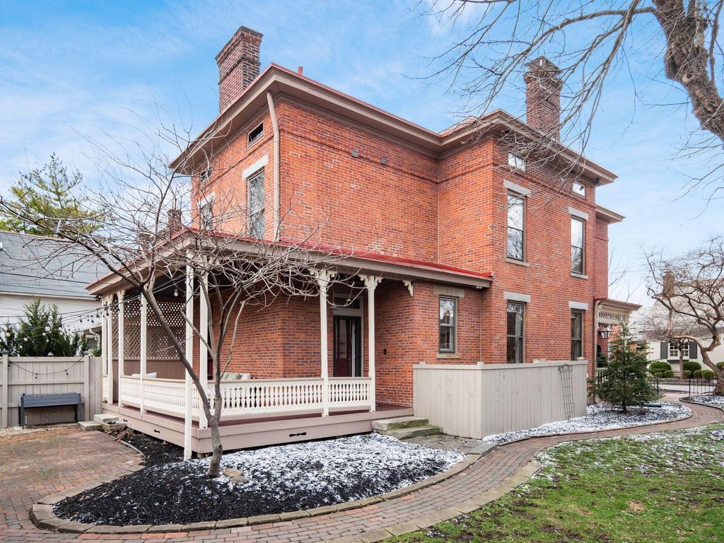 MARVELOUS 3 story Brick home located on a PREMIER street in German Village. Inside you will find 3 bedrooms, 4 FULL bathrooms, 9.5 ft ceilings, original wood floors, 2 gas fireplaces & more. The CHEF's Kitchen features 42'' cabinets, KitchenAid stainless steel appliances, a center island & granite counters. The 3rd floor features 766 sf of living space with a Vaulted ceiling, eyelash windows, its own HVAC system & a NEW FULL bathroom. The large DRY basement has abundant storage, a radon mitigation system, newly waterproofed front room with sump pump. This PICTURESQUE home has a charming wrap around rear porch with historic gingerbread trim, an OVERSIZED, fully fenced yard with brick patio & a 2 CAR GARAGE. The envy of the neighborhood! Walkable to top restaurants, cafes, parks, Saturday farmers market & all the activities downtown has to offer. METICULOUSLY MAINTAINED. HVAC 2017 & 2020 (2 sets), Back Porch Restoration 2024, Garage Door 2024, 3rd Fl NEW FULL BATHROOM 2020, NEW PRIVACY FENCE 2023, BASEMENT WATERPROOF 2026, SUMP PUMP 2026 ASK TO SEE FULL LIST.
