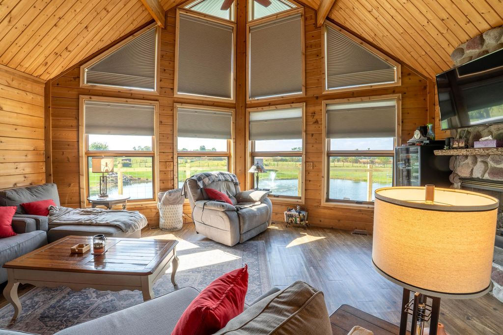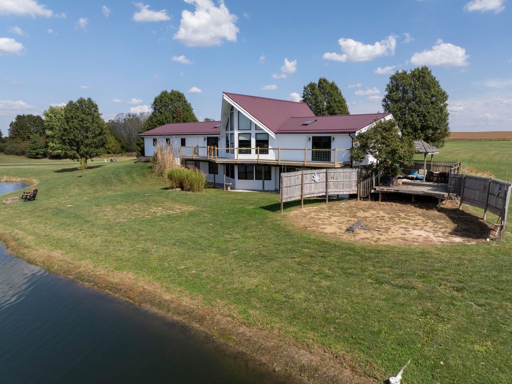 YOUR OWN PERSONAL RETREAT! OVER 11 ACRES! New siding and roof, 2025! New windows and doors, 2024! Remodeled gorgeous kitchen 2023! New AC 2022! Whole house generator! If you want peace and quiet, country living at it's finest but still close to everything, a spread of over 11 acres of beautiful land (some can get UAV tax credit) with a gorgeous A-frame type Cape Cod with cedar ceilings can be yours! Barns, one is 84 x 64 with 200 amp service, sheds, outbuildings, beehives, waterfalls, a huge pond, chicken coup, firepit area, and fences also make up this two parcel property where you can raise lots of farm animals if desired! Beautiful Fish Ohio stocked pond with automatic fish feeder, and a stunning rock waterfall! There is also 4 acres of underground dog fence for 3 dog collars if needed! HUGE owner suite bedroom with skylights, large bathroom with both claw type tub and a separate shower and even double sinks, and access to a back deck make for a true dream owner main bedroom! There is also a gazebo by an old pool deck area that just needs you to insert a new pool in that spot if desired, and could also be easily heated by an outside wood boiler! A loft area off the living room could also be easily made into a 4th bedroom or could serve as a den or office space! Lower level has wall of windows, too, two bedrooms, a nice sized family room with a wet bar, a recreation area (pool table stays), full bath, and walk-out to back yard areas. Walk in cooler 10x20 in barn and much, much more! Plenty of room to make your own personal retreat of any kind! This is a rare find, so call today for a showing!