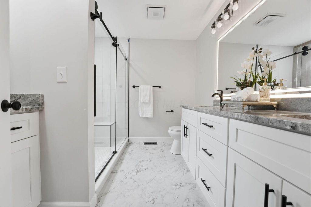 **Professional photos coming 4/2** Completely remodeled, 5-level split in Olentangy Schools! This home was thoughtfully designed with both functionality and everyday living in mind. The high-end kitchen features custom cabinetry with premium storage solutions including roll-out pantry drawers, a built-in trash cabinet, and a massive island with ample seating. Matching granite countertops carry throughout the kitchen and all bathrooms, creating a cohesive, upscale feel. The main living space is anchored by a beautifully updated fireplace an accent tile, complemented by all new lighting fixtures throughout the home. High-end LVP flooring adds durability and style across the main areas. The primary suite features custom built-ins in the closet, while the en-suite bath offers a spacious walk-in shower with a bench and additional cabinetry for storage. Outside, enjoy a brand new concrete patio and professionally designed landscaping--perfect for relaxing or entertaining. This sought-after 5-level split floor plan offers a unique and highly functional layout. The private primary suite occupies its own dedicated level, while additional bedrooms and a full bath are located upstairs. The main level features vaulted ceilings and an open-concept design, creating a bright and airy living space. A large bonus room provides flexibility as a second living area or potential 4th bedroom, and the home still includes a true basement--offering both finished space and ample storage. First-floor laundry with additional storage adds everyday convenience. Ideally located directly across from Olentangy Meadows Elementary and just minutes from Polaris, IKEA, Topgolf, and a wide variety of shopping and dining options. With quick access to major freeways, this location makes commuting simple while keeping you close to everything Lewis Center has to offer.