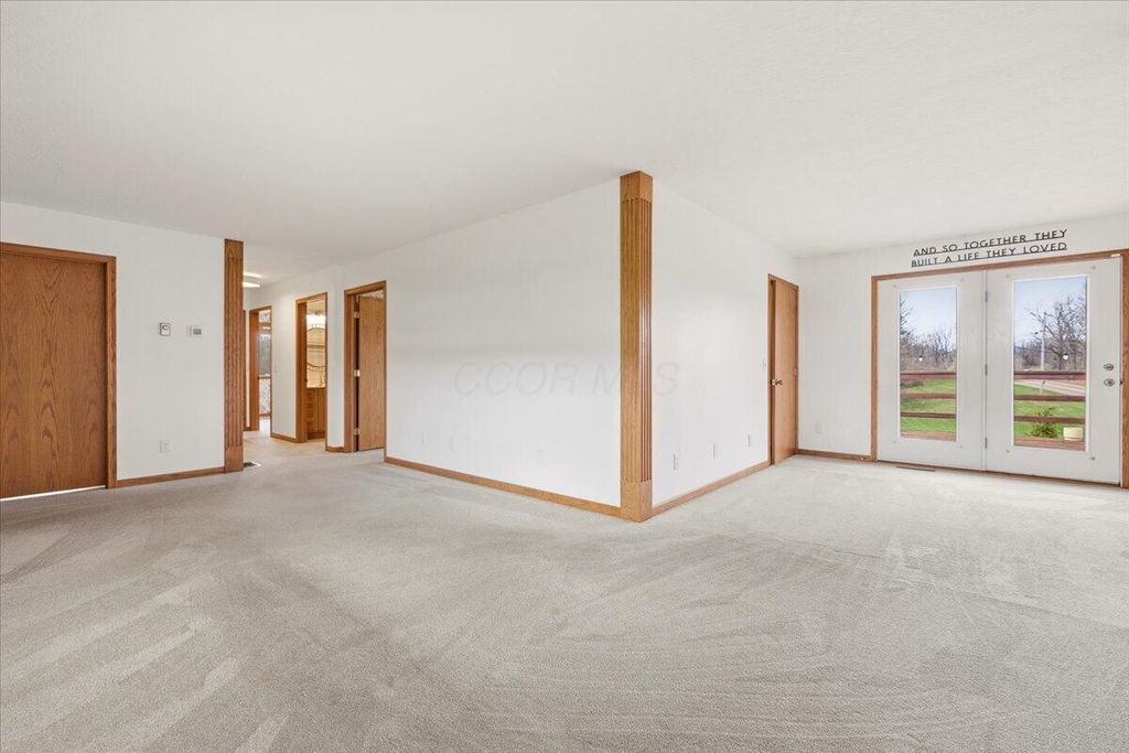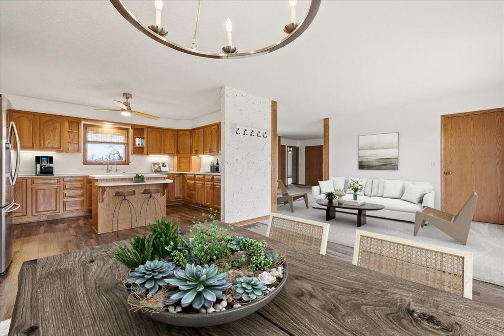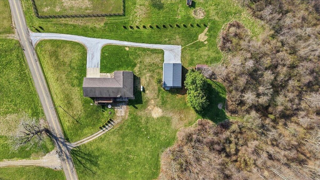 Discover your dream home on 10 stunning acres in the sought-after Centerburg Local School District! This spacious ranch, built in 1997, offers 4 bedrooms and 3 full bathrooms thoughtfully designed across two levels, providing flexibility, privacy, and room to spread out. Car enthusiasts and hobbyists will love the 4+ enclosed garage spaces, featuring 2 on the main level and 2+ in the finished lower level. Enjoy year-round comfort with central air, propane heat, and a cozy wood-burning furnace plumbed directly into the ductwork. The lower-level walkout is ideal for a mother-in-law suite, complete with a bedroom, full bath, and kitchenette, perfect for extended family or guests. Outside, the 10-acre setting offers endless possibilities, featuring a 40x30 pole barn with concrete floor and electric, mature trees, and open green space. Additional highlights include new HVAC in 2025, three washer hookups and two dryer hookups, and a convenient location just off State Route 3 between Mount Vernon and Centerburg. Consolidated Electric with high-speed internet available.