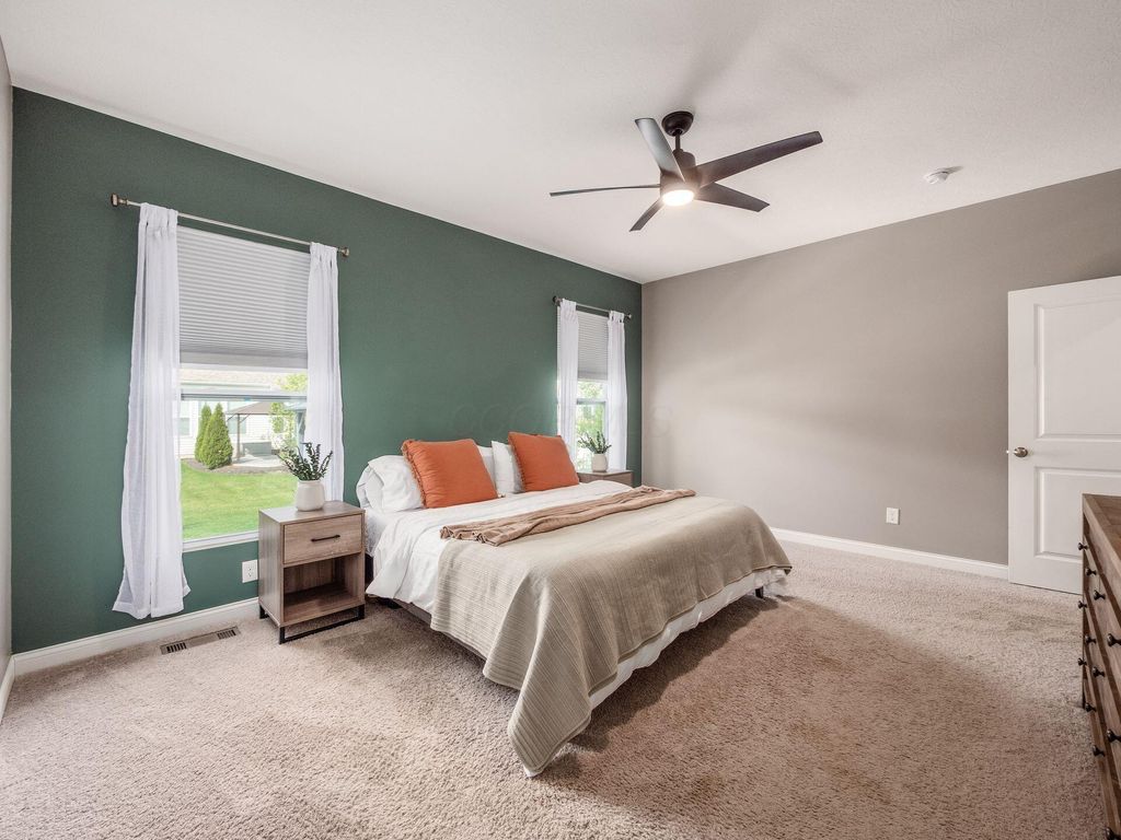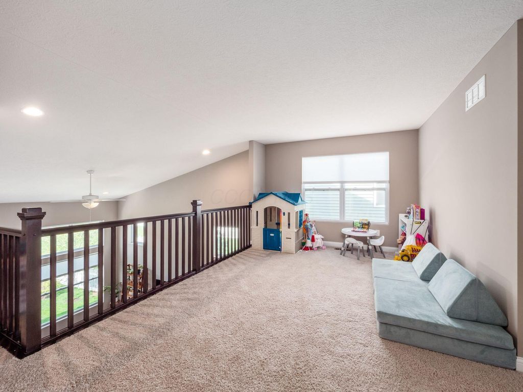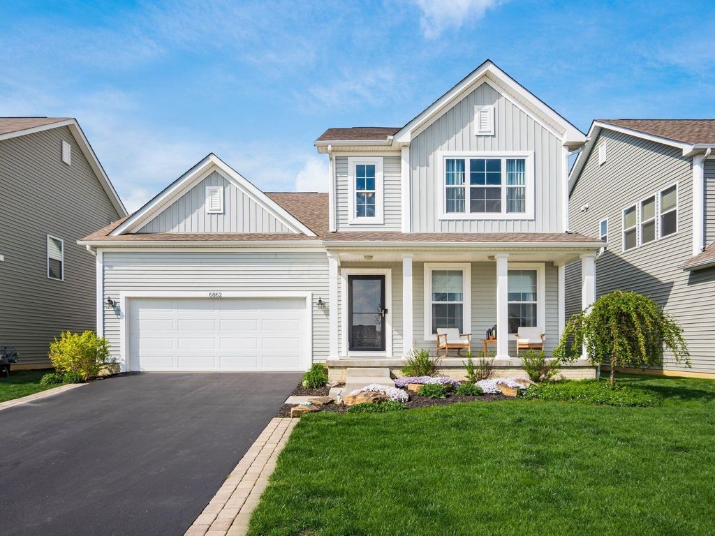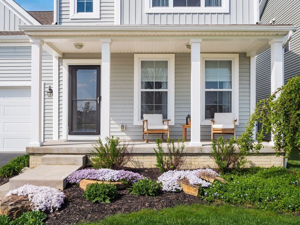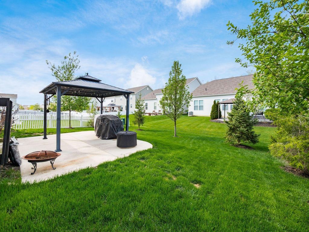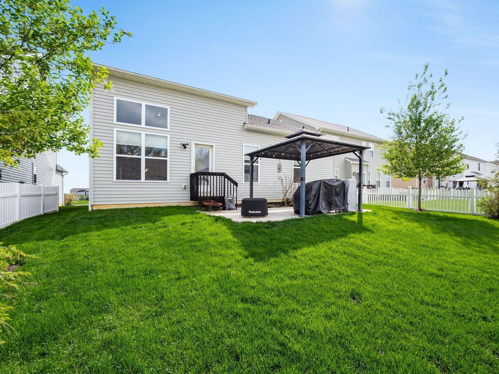 Welcome home! Stunning property in Preston Hollow, overlooking a peaceful, scenic pond. First-floor primary suite w/spacious en-suite bath. Open-concept kitchen features a lg island w/bar seating. Two-story great room filled with natural light. First-floor laundry, spacious bonus space/loft (perfect for a playroom, media area or additional lounge). Full unfinished basement plumbed for third-full bath. Enjoy the beautifully maintained backyard, complete with patio and charming gazebo. These are just a few of the many highlights in this beautiful M/I home. This home combines comfort, style and functionality in a peaceful and tranquil setting.
