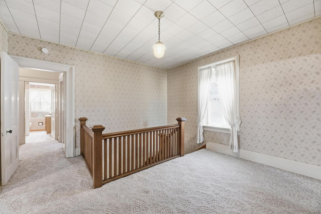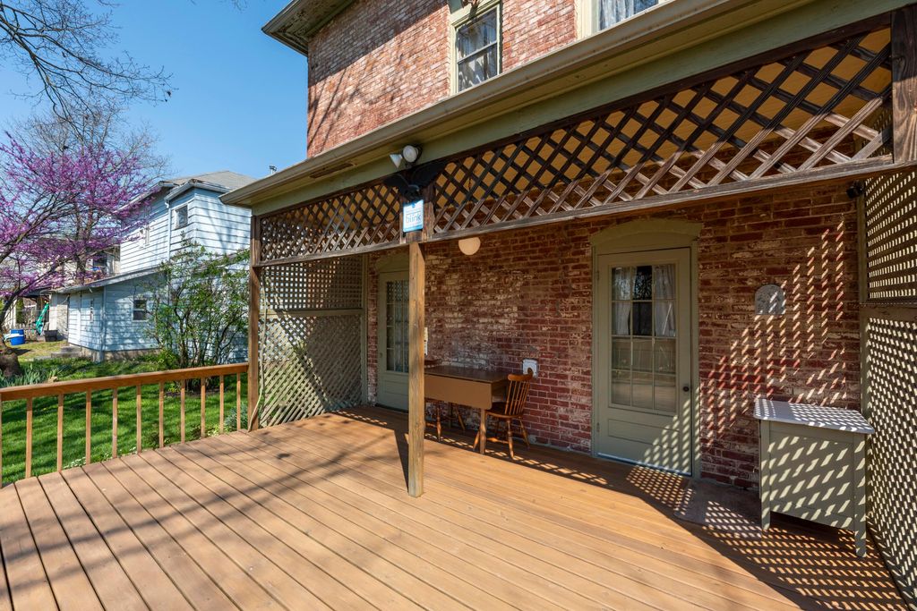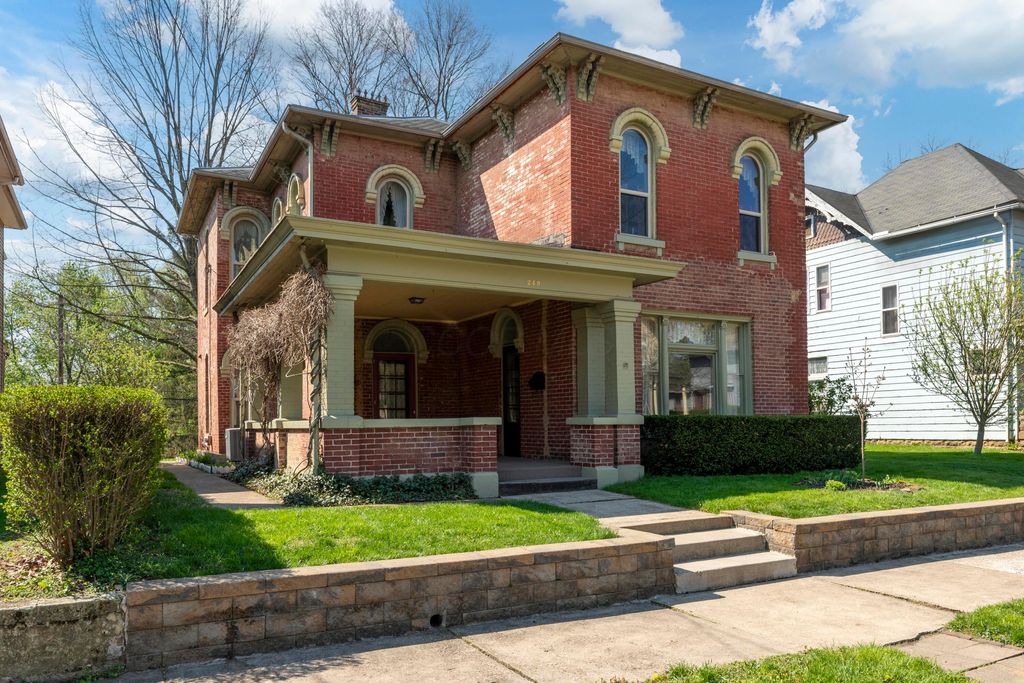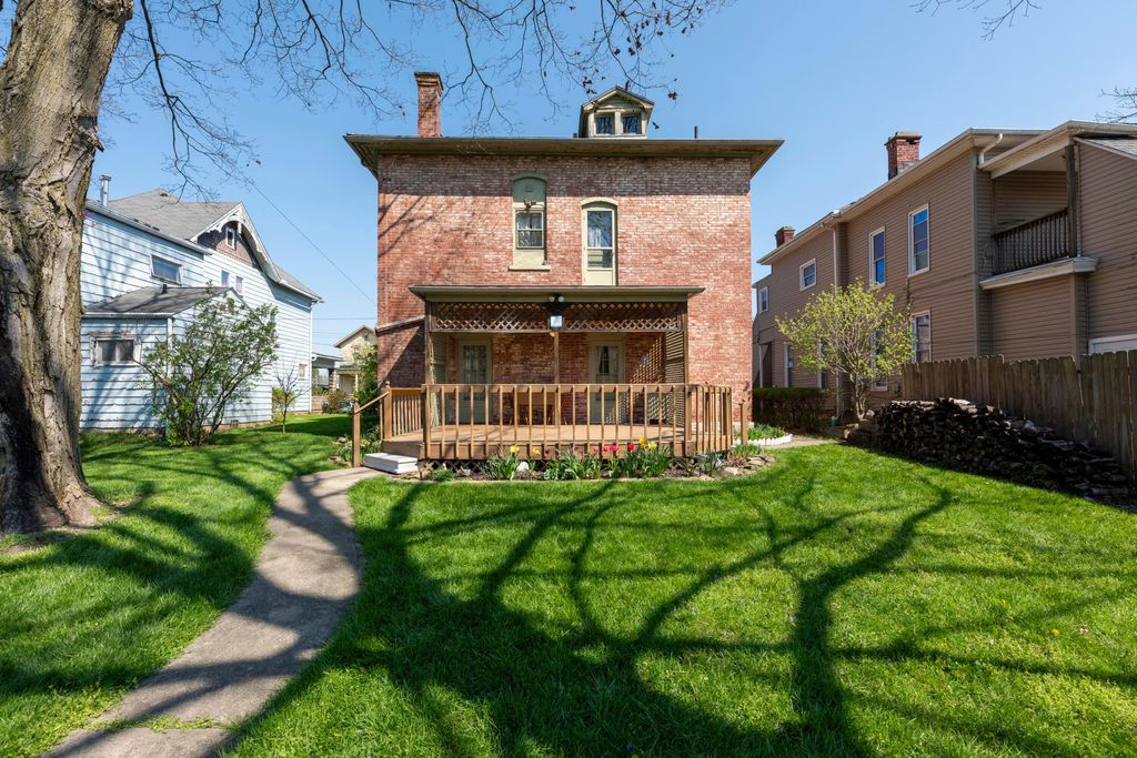 L@@K at this charming 19th-century Victorian Italianate double-brick home located in the historic Old Towne West district of Newark. Built in 1880, this well-maintained home blends historic character with modern comfort and features spacious rooms, high ceilings, original woodwork, and oak hardwood floors throughout (including under the carpet). The main level offers abundant natural light from newer Low-E windows, a large living room with wood-burning fireplace, great room with separate entrance, elegant dining room, spacious kitchen with ample cabinetry and appliances, first-floor laundry, and a half bath. Upstairs includes a loft area, four generously sized bedrooms with high ceilings and hardwood floors, and a full bath. A walk-up unfinished attic and full basement provide excellent storage or potential future living space. Enjoy the large covered front porch and a newer partially covered rear deck surrounded by mature trees--great for relaxing or entertaining. Additional features include new gutter guards, three off-street parking spaces, and a barn with workshop space that could be converted into a two-car garage. Located just a few blocks from downtown Newark, Recreation, Entertainment, Restaurants.