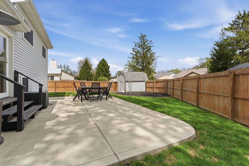 Welcome to this charming 4-bedroom, 2-bath home in the desirable Hayes Colony community of Delaware! From the moment you arrive, you'll love the inviting covered front porch--perfect for relaxing mornings or unwinding in the evening. Inside, the home feels bright, modern, and move-in ready, featuring beautiful dark LVP flooring that flows throughout the main living spaces. The kitchen opens to a spacious additional eating area, offering plenty of room for gatherings, entertaining, or everyday living. The primary suite is a true retreat with a generously sized walk-in closet, with three additional bedrooms upstairs. Step outside to enjoy the large backyard, complete with a concrete patio and fully fenced yard--ideal for pets, play, or hosting summer get-togethers. Conveniently located near major freeways for an easy commute, this home also offers quick access to the super charming downtown Delaware area, filled with local shops, restaurants, and community events. A perfect blend of style, comfort, and location--this one is ready to call home!