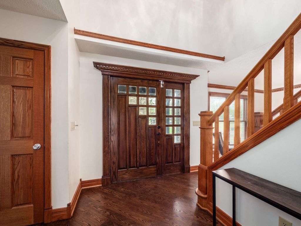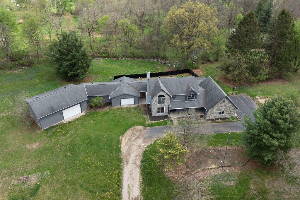 Custom-built home on 5 acres in the New Albany School District with over 4,000 sq ft of garage and shop space, ideal for car enthusiasts or contractors. The main level includes an in-law suite, formal living and dining rooms, a family room with fireplace, mudroom, and a large entertainment area with bar. The kitchen features oak cabinetry, a built-in KitchenAid refrigerator, JennAir 4-burner range, double oven, and dishwasher. Upstairs offers a spacious primary suite with walk-in closet, two additional bedrooms, a full bath, and second-floor laundry. Additional highlights include detailed woodwork throughout, a large basement with gun safe, an attached three-car garage, and a private setting backing to a creek.