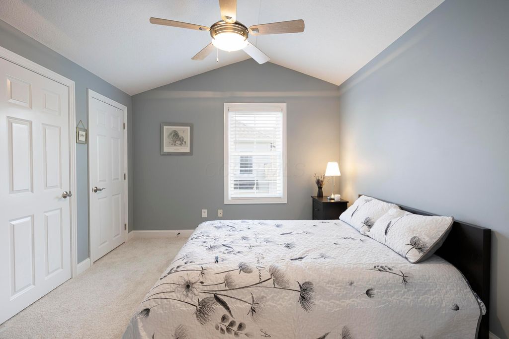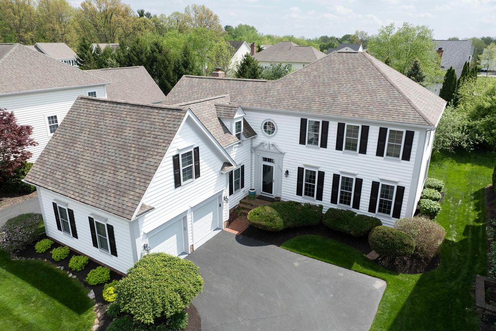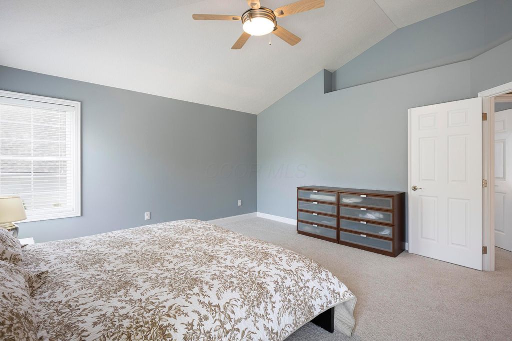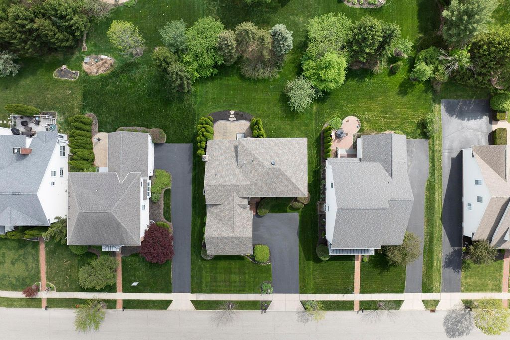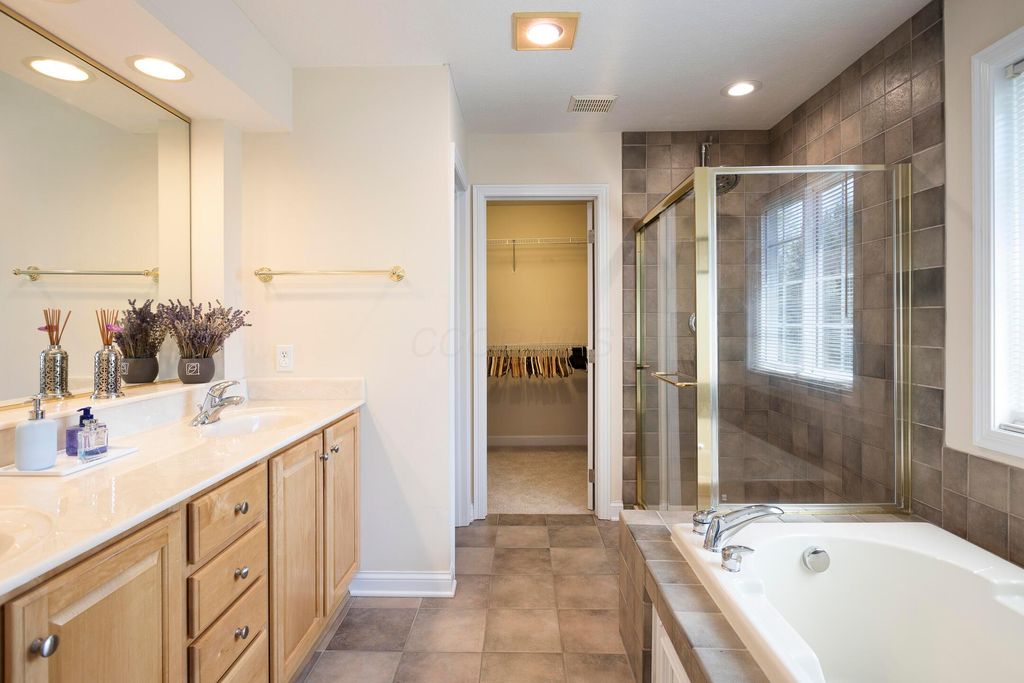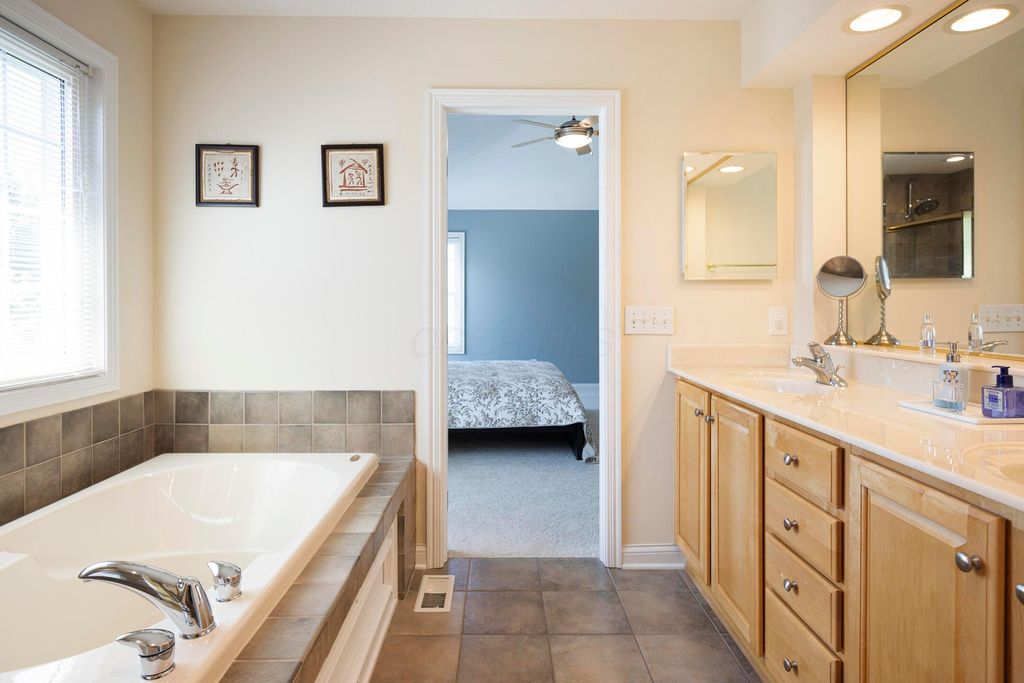 Four-bedroom, 2.5-bath home with 3,189 square feet, close to New Albany Links Golf Club and nearby green space, all within the New Albany School District. The main level offers a functional, open layout with hardwood floors, a two-story great room with gas log fireplace, and a second-floor overlook. The kitchen features granite countertops, maple cabinetry, a center island, stainless steel appliances with gas range, eat in space with direct access to the paver patio, and a formal dining room. A first-floor office or flex space and laundry add everyday convenience. Upstairs, the primary suite includes vaulted ceilings, a walk-in closet, and an updated bath with double vanity and separate shower. Three additional bedrooms or a flexible bonus room complete the second level. The backyard is designed for privacy with a paver patio, defined seating area, and mature evergreen screening, opening to green space beyond. Full basement offers storage or future finishing potential. Two-car attached garage. Recent updates include new carpet, windows, and microwave (2025), foam-insulated garage doors and exterior paint (2024), updated toilets (2023), patio (2022), Trane HVAC, water heater, and sump pump (2021), washer, dryer, and dishwasher (2020), and roof (2018).