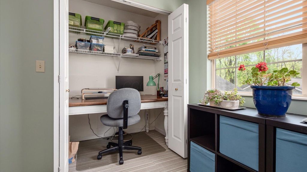 Tastefully updated and exceptionally well cared for, this Heath condo offers a flexible floor plan, thoughtful updates, and a peaceful setting. Featuring 3 bedrooms, 2.5 baths, and a dedicated den, the layout is designed for both everyday comfort and versatility. The main level includes a spacious primary suite with a walk-in closet and updated private bath, along with convenient first-floor laundry. New flooring throughout adds a fresh, cohesive feel. The eat-in kitchen offers bar seating, stainless steel appliances, a pantry, and neutral finishes, flowing easily into the main living spaces. A private covered porch overlooks beautiful landscaping and wooded views, creating a serene and relaxing outdoor retreat. Upstairs, a second en-suite bedroom provides ideal space for guests. A two-car garage and abundant storage throughout complete this well-appointed home.