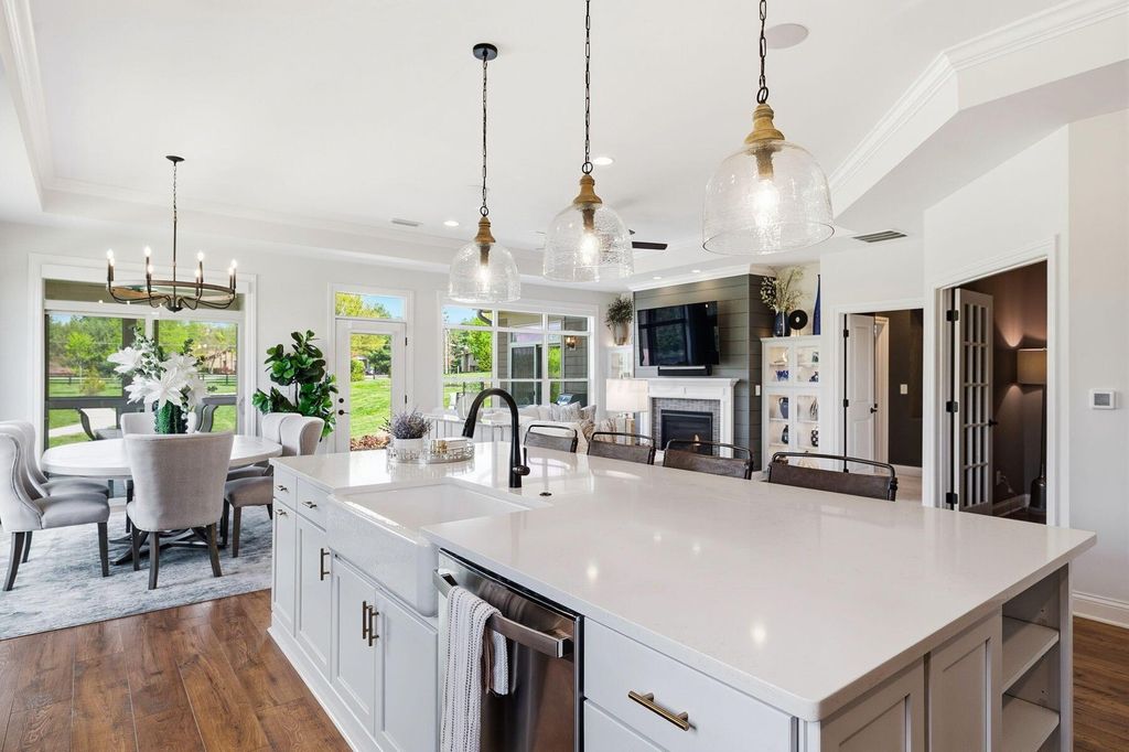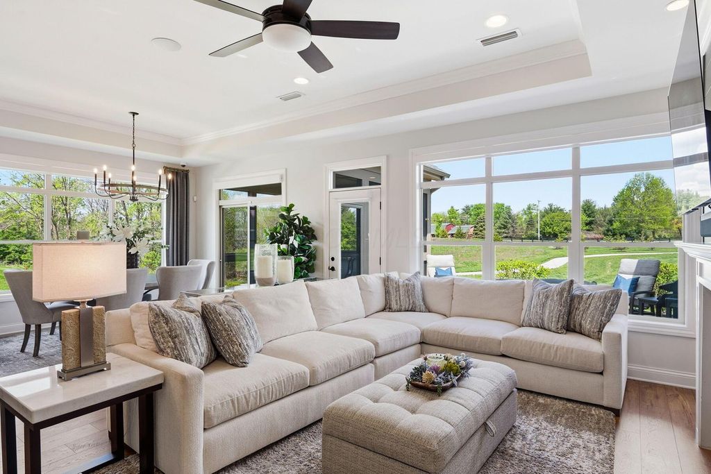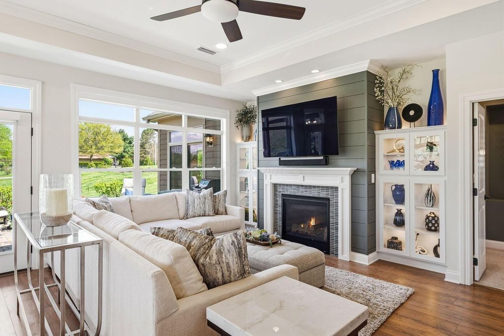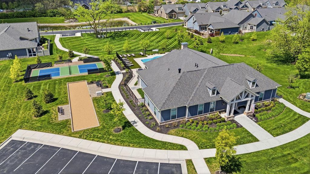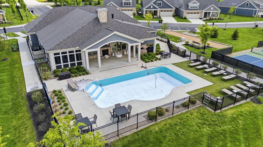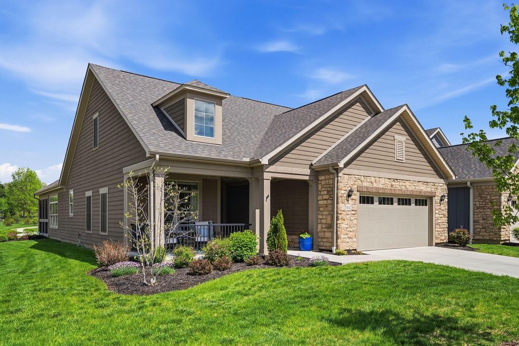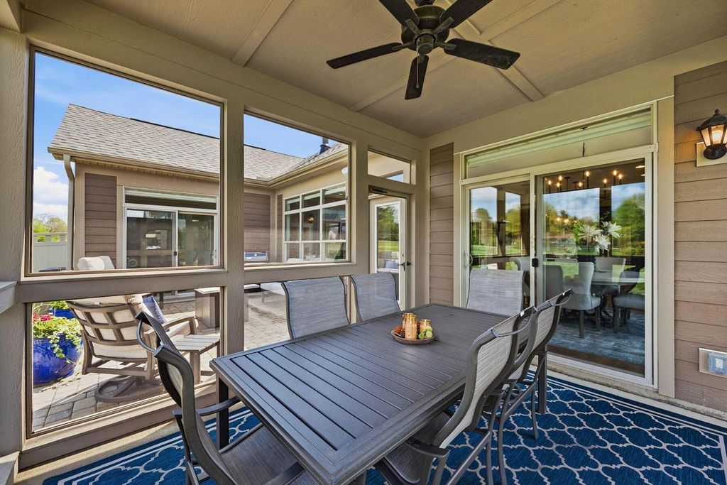 OPEN HOUSE SUN., 5/3/26 FROM 1-3 P.M.! This exceptional end unit free-standing condo sits on a prime lot surrounded by lush green space and positioned beside the serene community pond, offering gorgeous water views and unforgettable sunsets. Designed with both style and functionality in mind, this former Epcon model home showcases the sought-after ''Torino Entertainer's Model'' floor plan and includes EVERY builder upgrade. Step through the impressive covered front entry porch into over 2,000+ sq. ft. of beautifully appointed living space. The open-concept great room easily accommodates oversized seating and flows seamlessly into a spacious dining area and expansive kitchen island/serving bar - perfect for hosting gatherings with ease. The elegant owner's suite is a true retreat, complete with a custom walk-in shower, double sinks with quartz countertops, a large walk-in closet with a custom organization system, skylight, fireplace, and a private bonus/sitting room. A flexible third bedroom or home office adds versatility to the layout. Enjoy abundant natural light throughout, plus a screened porch and private patio with firepit for year-round relaxation. Surround-sound speakers are installed throughout the interior and on the patio, enhancing both everyday living and entertaining. Additional highlights include an extra-large 2-car garage with pull-down attic access for storage. The community offers outstanding amenities with a clubhouse, pool, fitness center, and pickleball court. The $265/month HOA covers lawn care/landscaping, snow removal, and trash service. This rare combination of privacy, upgrades, and water views makes this home a standout opportunity.