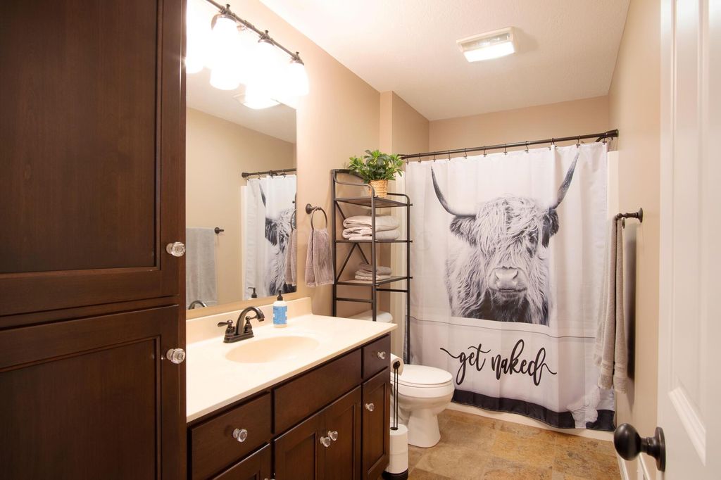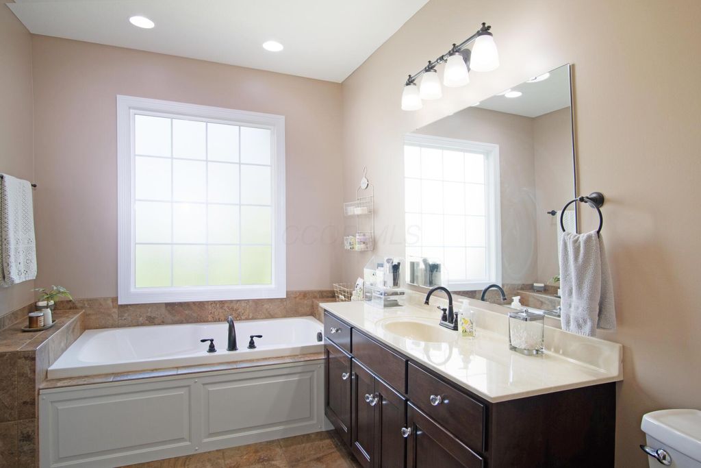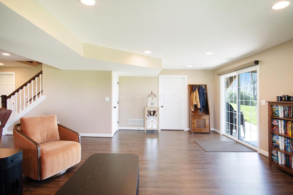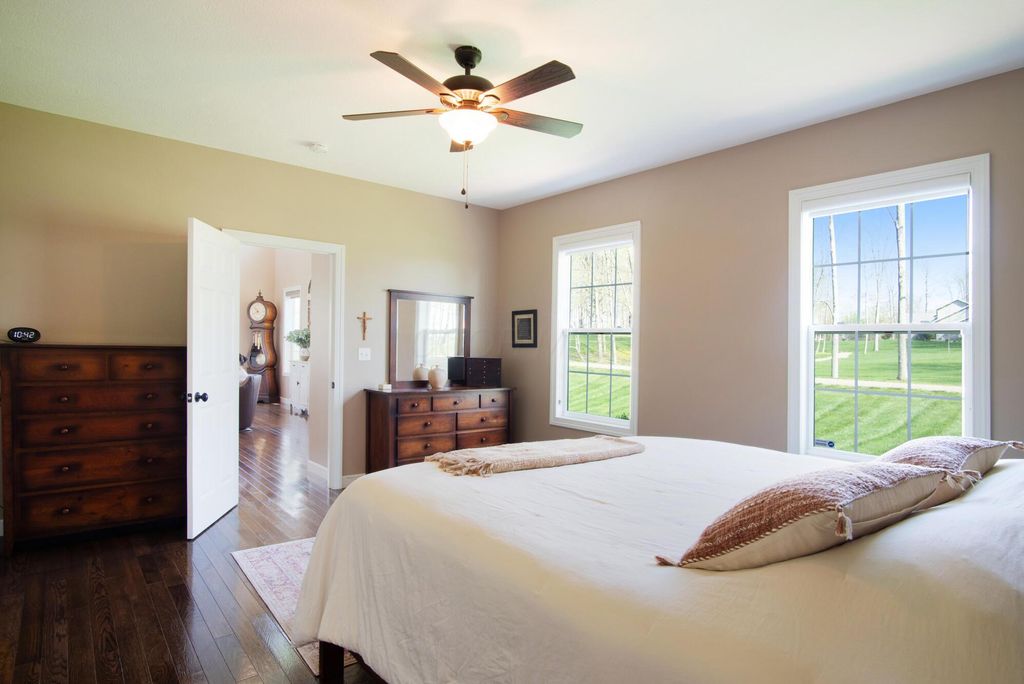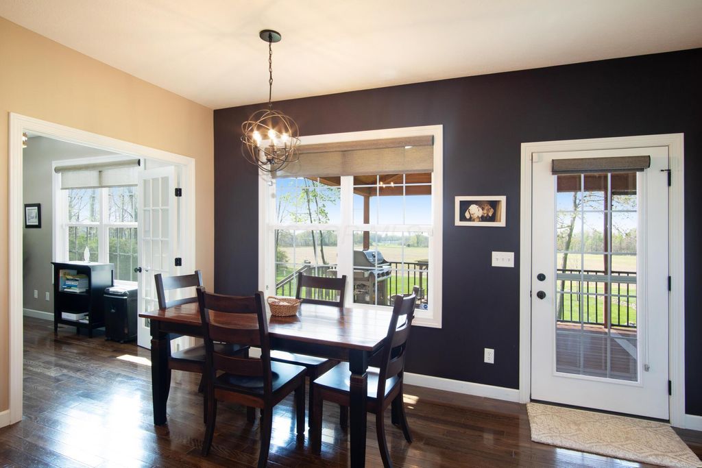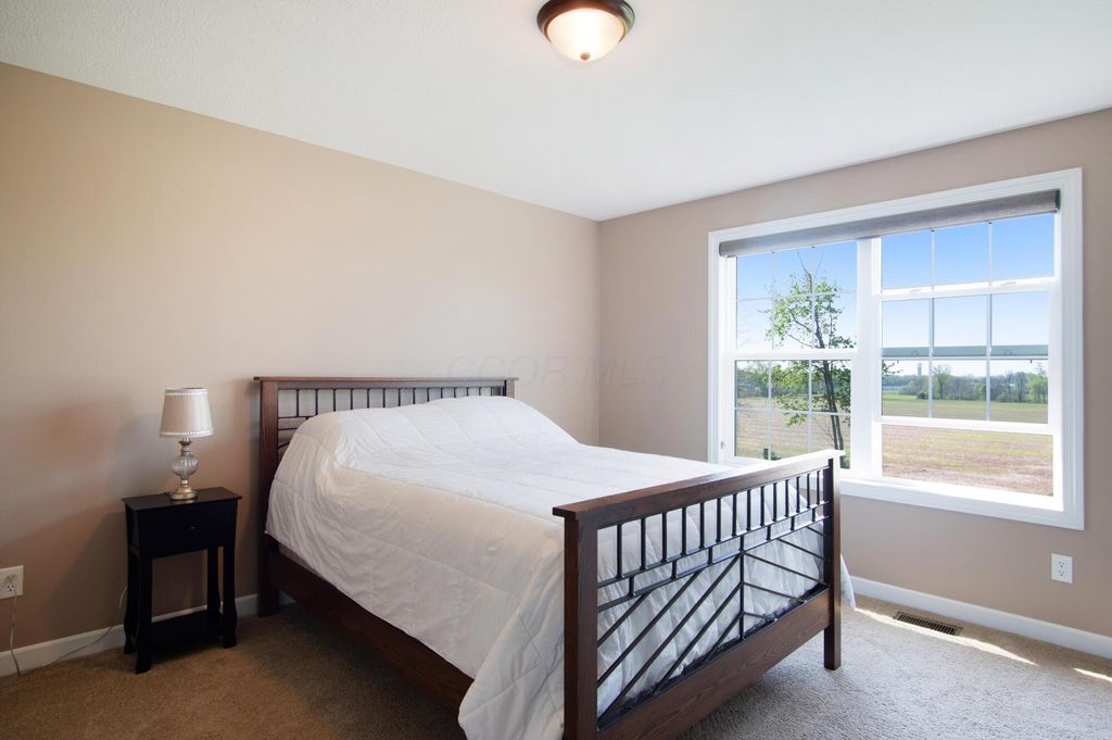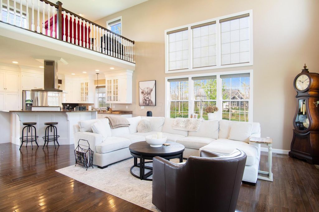 Stunning 3BR/3BA colonial on 1.43 private acres in sought-after Woodbridge Subdivision -- no detail overlooked, no expense spared. Situated on a quiet cul-de-sac with open countryside views in every direction. 3,498 total sq ft across 3 levels: 1,572 main floor, 578 upper, and a 1,348 sq ft finished walkout basement that rivals any above-grade living space in this price range. The soaring 2-story great room features gleaming hardwood floors, a wall of windows flooding the space with natural light, and a dramatic floor-to-ceiling natural stone wood-burning fireplace. Chef's kitchen delivers granite countertops, white shaker cabinetry to the ceiling, stainless steel chimney hood, center island with seating, and glass-front uppers -- open to the great room and the views beyond. Main-floor primary suite offers dual walk-in closets and a luxurious 8x15 private bath. Upper level adds 2 generous bedrooms, full bath, open family room loft with gas fireplace, and stunning open-to-below views. Finished walkout basement boasts a massive recreation room with gas fireplace, hardwood-style floors, home office area, full bath, and direct outdoor access. Covered composite deck with cedar tongue-and-groove ceiling overlooks a professionally landscaped backyard retreat featuring a pergola, stone paver patio, built-in fire pit, and winding stone path. 3-car attached garage with single and double doors. Home features 3 fireplaces, 2 gas and one wood-burner on main floor. Fredericktown LSD. Immaculate, move-in ready -- this home lives as beautifully as it photographs.