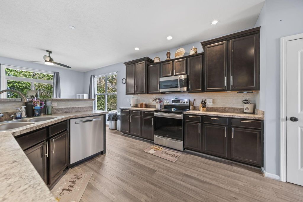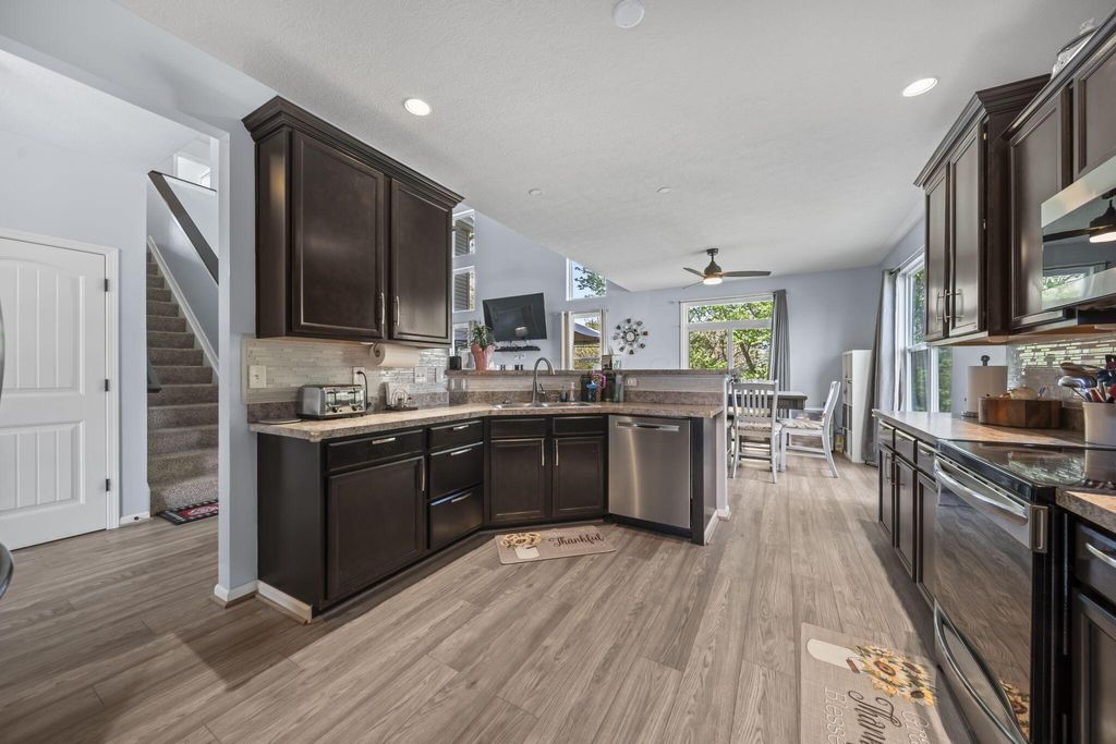 Welcome to this beautiful 4 bedroom, 3.5 bath two story home. You are greeted by a bright foyer and soaring ceilings that lead into a seamless dining and kitchen space with stainless steel appliances and nice cabinetry. The spacious great room offers tons of natural light and room to entertain. The first floor owner's suite features a large walk in closet and bath. Upstairs includes a loft overlooking the great room, plus additional bedrooms and a full bath. The finished lower level adds a rec area, bedroom, and full bath. Enjoy evenings on the large deck or walkout patio overlooking the private fenced backyard.