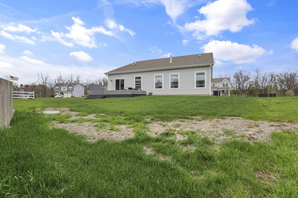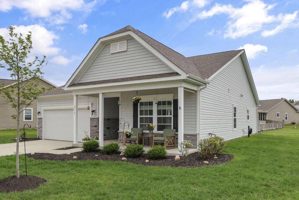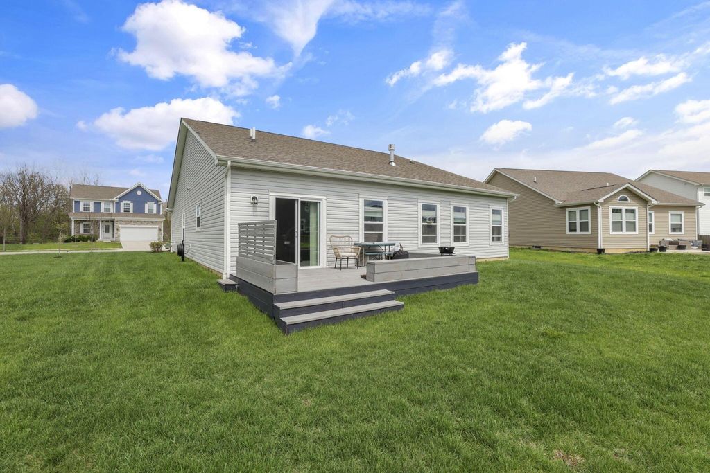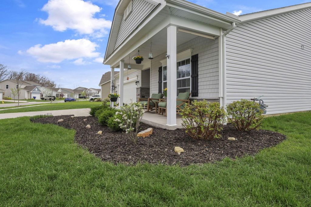 Modern Living Meets Small-Town Charm - Picture this, morning coffee on the covered front porch as daffodils nod hello, sunlight streaming through the wide flow-through foyer into a bright, open-concept Great Room. The eat-in chef's kitchen is a showstopper, stainless-steel appliances, 5-burner gas range, combo wall oven/microwave, gleaming granite counters and island, plus tall 42'' upgraded cabinets with crown molding. It's a joy to cook and entertain here. Curl up by the gas fireplace with blower, flanked by custom built-ins. Retreat to the spacious owner's suite oasis featuring a tray ceiling, generous walk-in closet, and luxurious bath with large soaking tub. Flexible living spaces, abundant natural light, and thoughtful details complete this comfortable single-level ranch. Step out back to your private deck overlooking a rare 0.38-acre lot with privacy on one side, an outdoor entertainer's paradise. Nestled in a friendly Delaware County neighborhood near Alum Creek State Park, hiking and biking trails, fishing, shops, cafes, farmers market, and top-rated schools. Don't just buy a house, step into the lifestyle you've been picturing. Your search for active living is over. Give your agent a call to come look today.